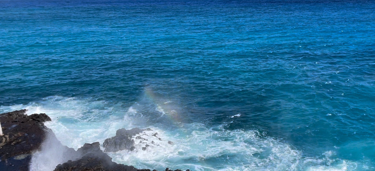 파도가 부서지는 순간, 예쁘게 피어나는 무지개.