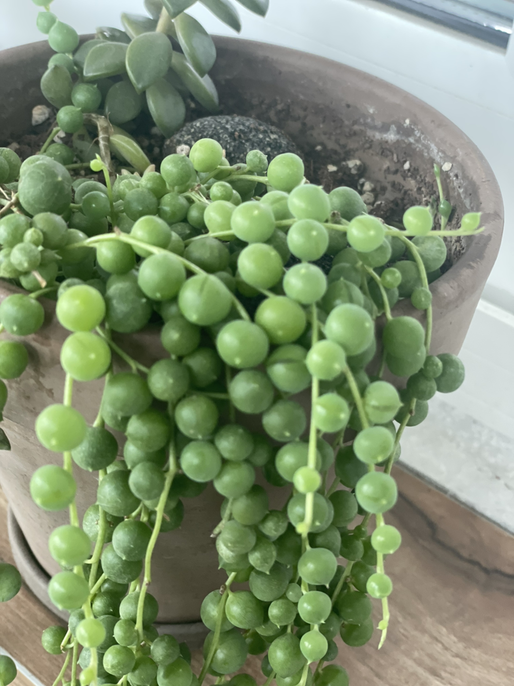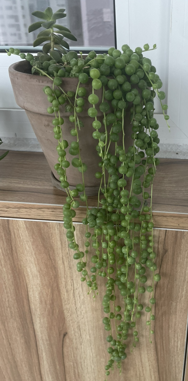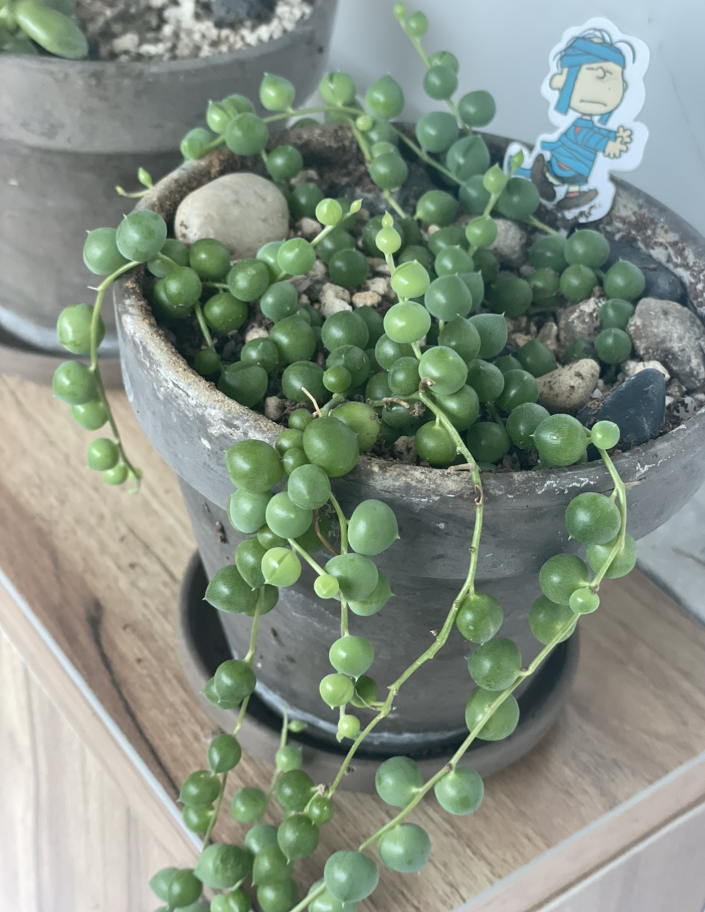 잘 키우면 꽃도 피운다고 하는데 아직 꽃을 본 적은 없다. 하지만 동글동글 잎 만으로도 충분히 예쁘다. 살살 물샤워를 시켜주고 난 후 앉아서 봄날 창가에 주렁주렁 내려오는 콩알이들을 보고 있으면 참 행복해진다. 특히 새로 난 작고 단단하고 연한 색의 작고 동그란 잎은 너무나도 사랑스럽다.
