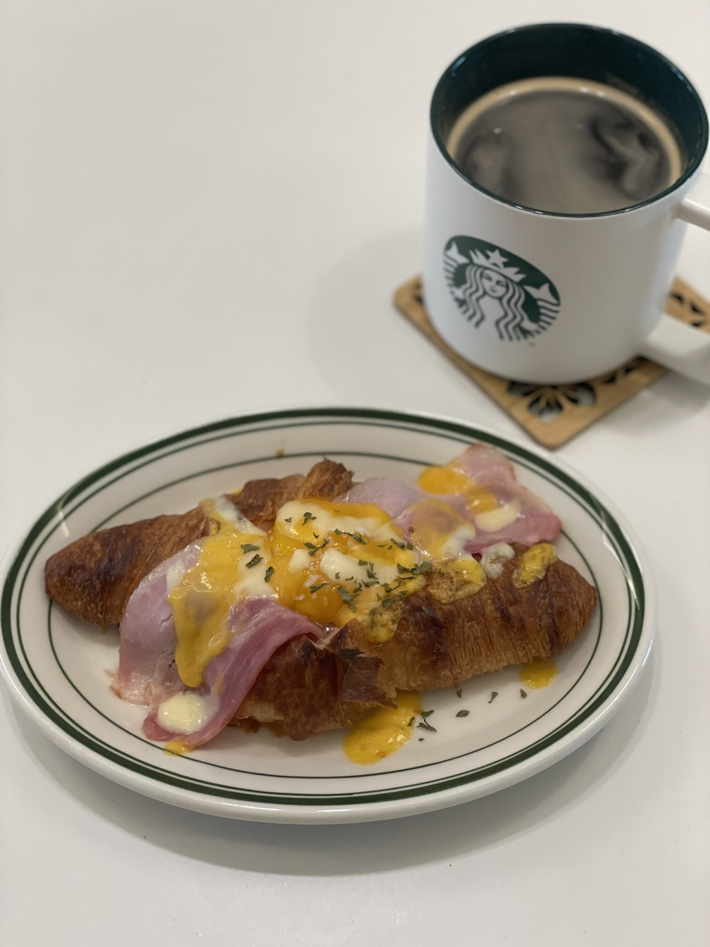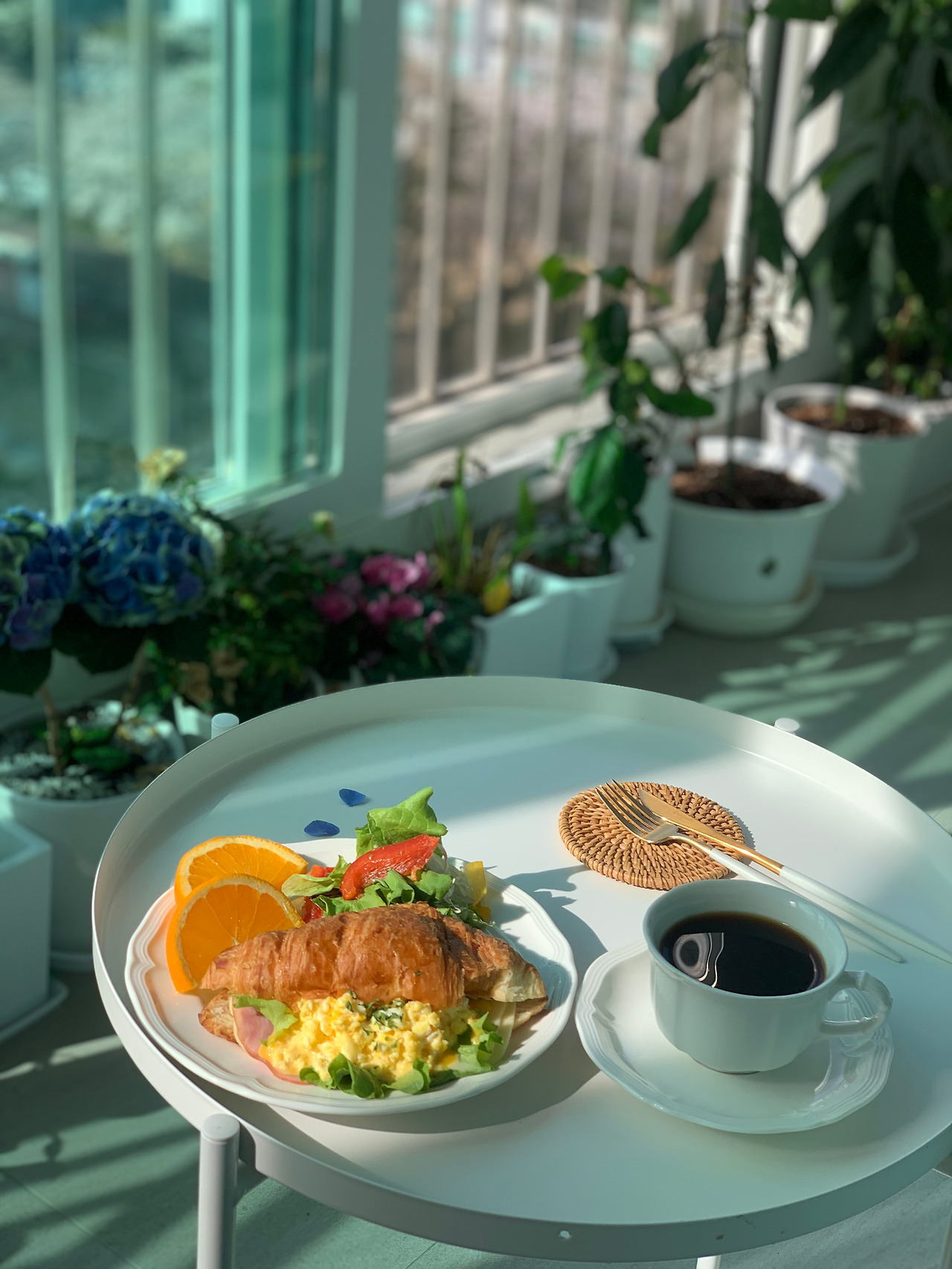 햇살 좋은 창가에서, 오늘 아침도 크로아상 샌드위치와 함께 건강하고 든든하게 시작해 본다.