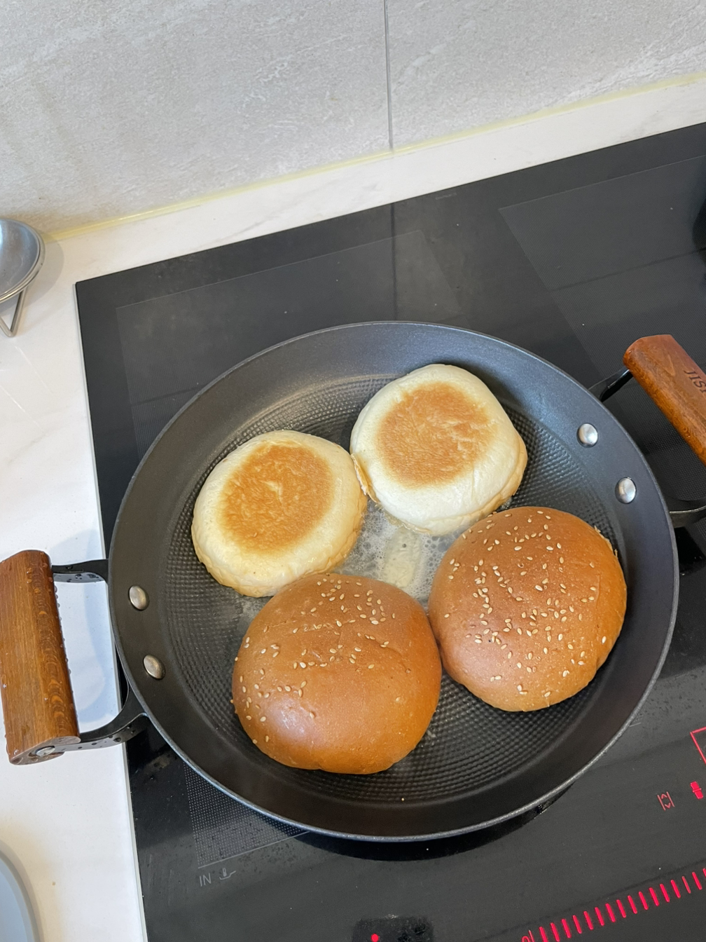 재료가 모두 준비되면 우선 버터를 두르고 햄버거빵을 굽는다. 완전히 익힌다기 보다 버터향을 내주고 바삭한 느낌을 주도록 살짝만 구우면 된다.