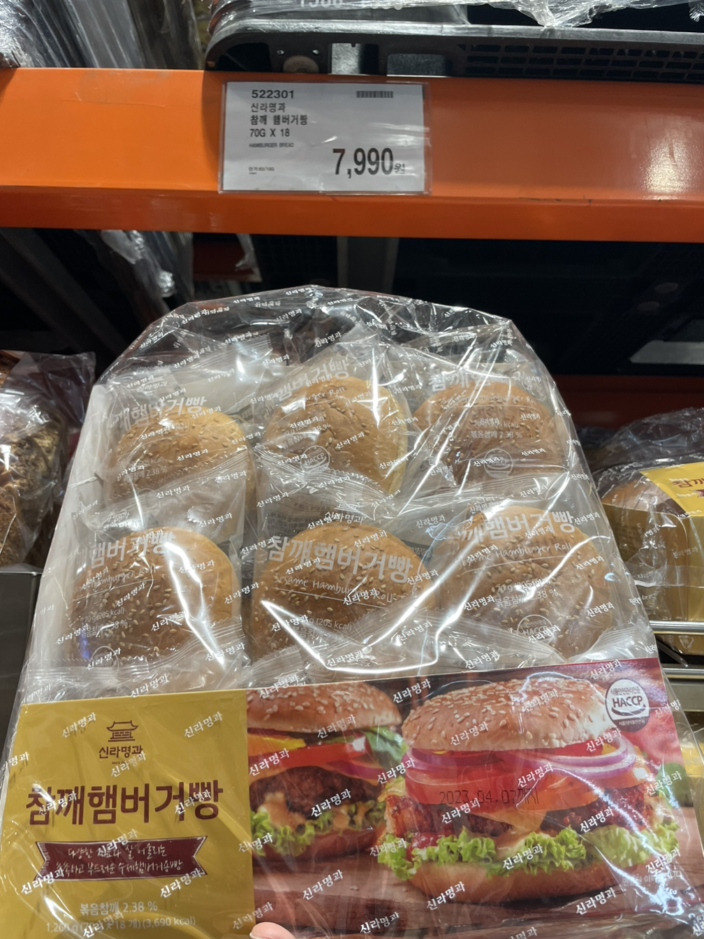 코스트코에 가면 핫도그빵 옆에 나란히 참깨햄버거빵이 있다. 18개에 7990원이니 개당 500원이 채 안되는 가격인데 개별포장까지 되어 있어서 냉동실에 넣어 두었다가 하나씩 해동해서 먹기도 좋다. 우리는 일단 네 식구가 두세번 먹고 나면 어느 정도 소진이 되고 남는 것만 냉동실에 넣고 생각날때 꺼내 먹는다.