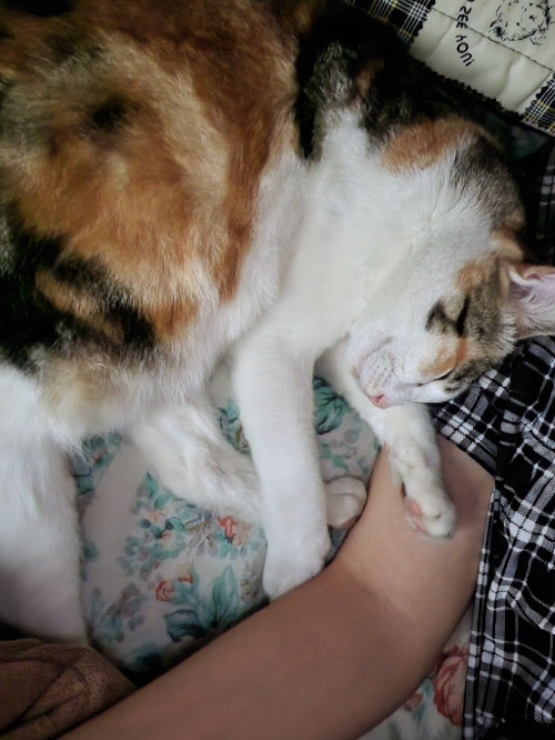 금방 침대 위로 점프해 올라와 내 옆에 딱 붙어 눕더니 또 잠들었다.