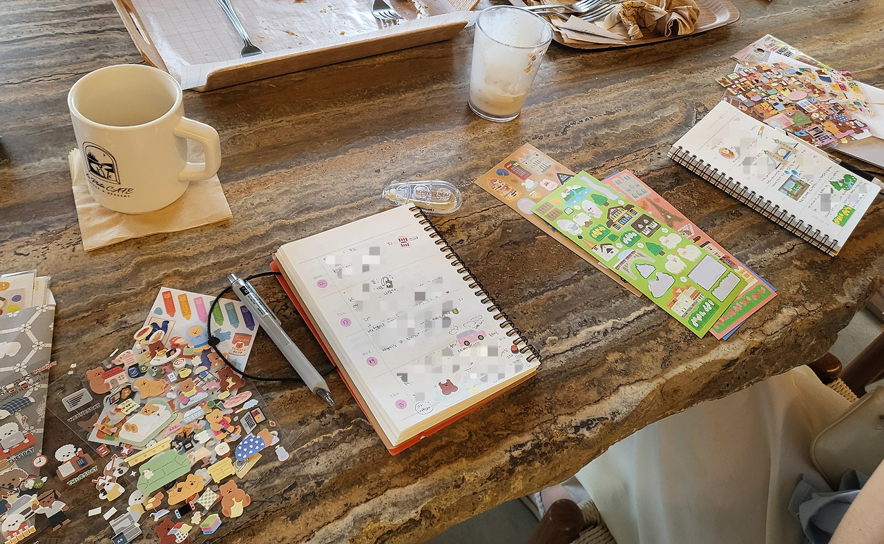 같이 여행 가거나 틈날 때 카페에 가면 우리는 약속한 듯 일기장을 꺼낸다. 그리고 스티커를 쌓아둔다. 오늘