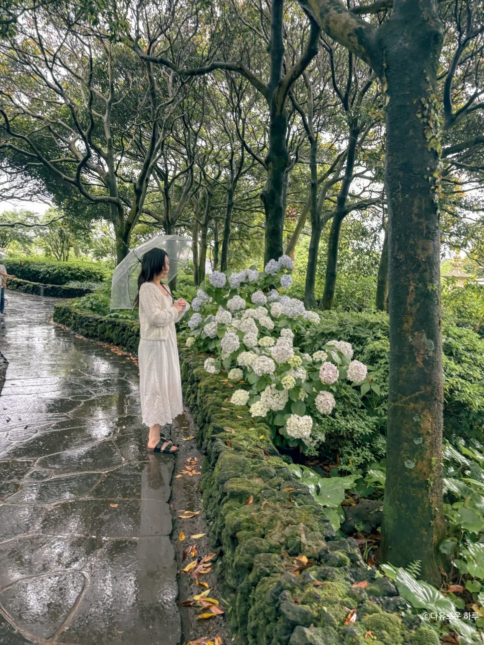 비에 젖은 나뭇잎들과 수국이 정말 아름답더라구요