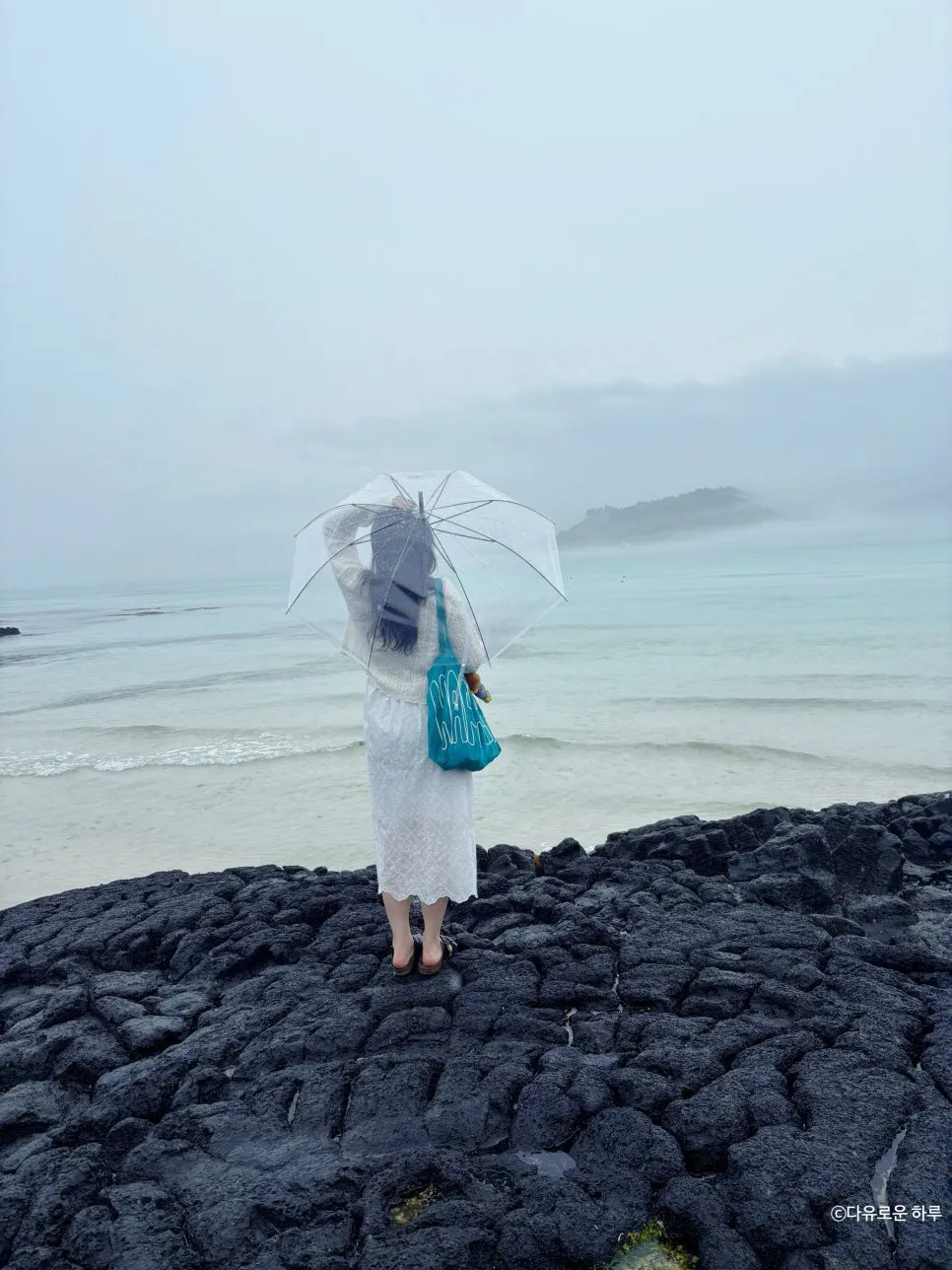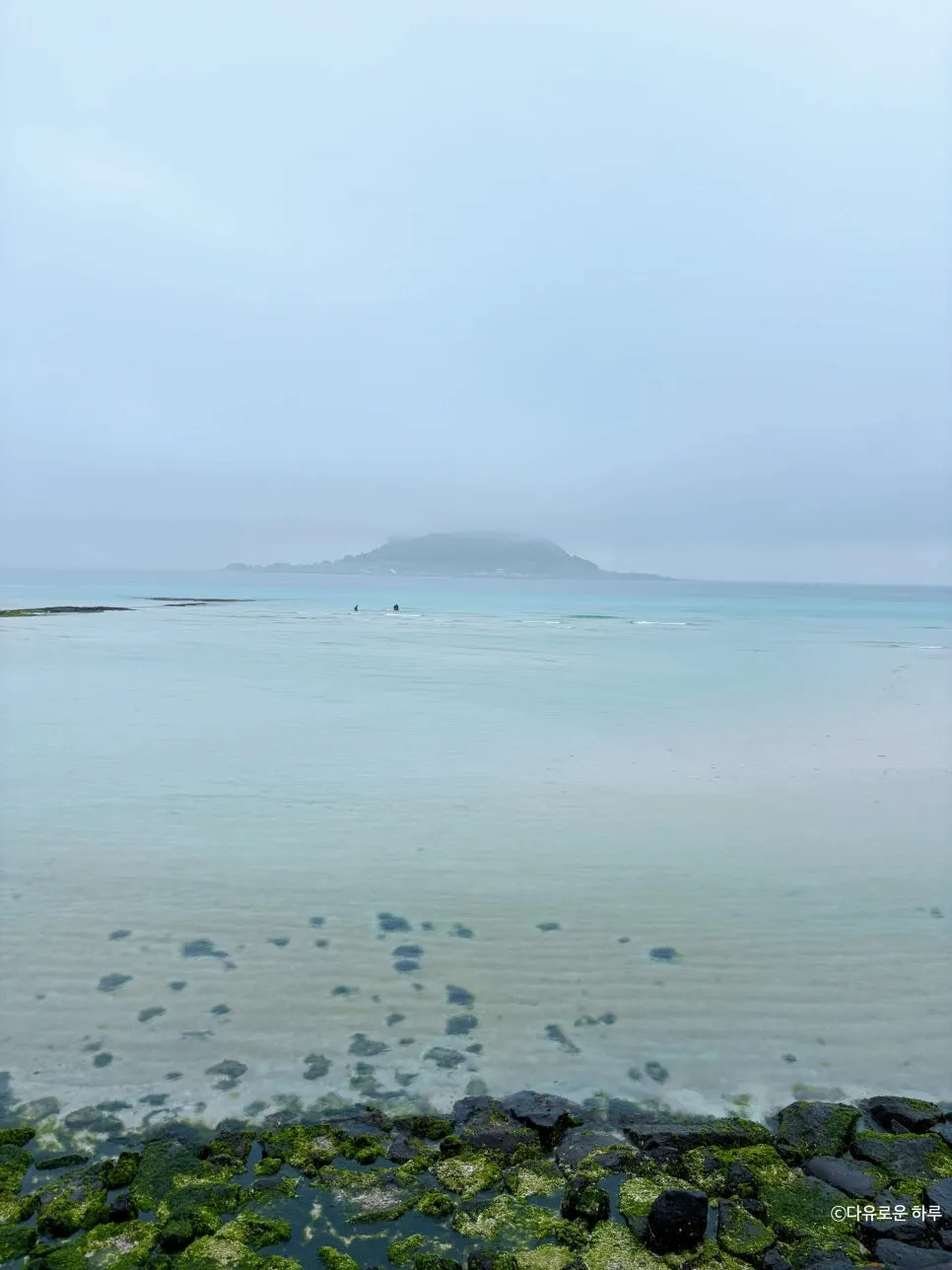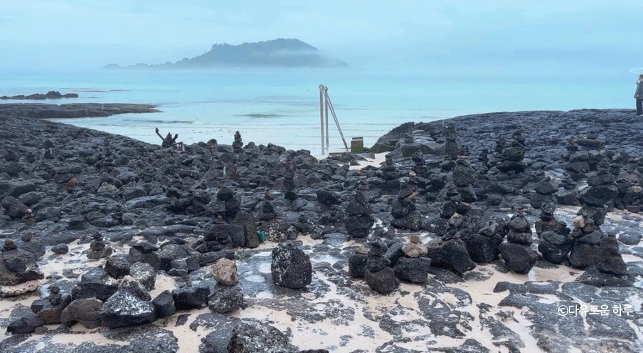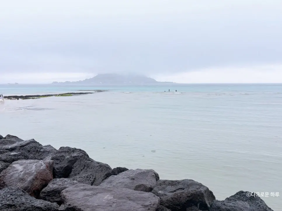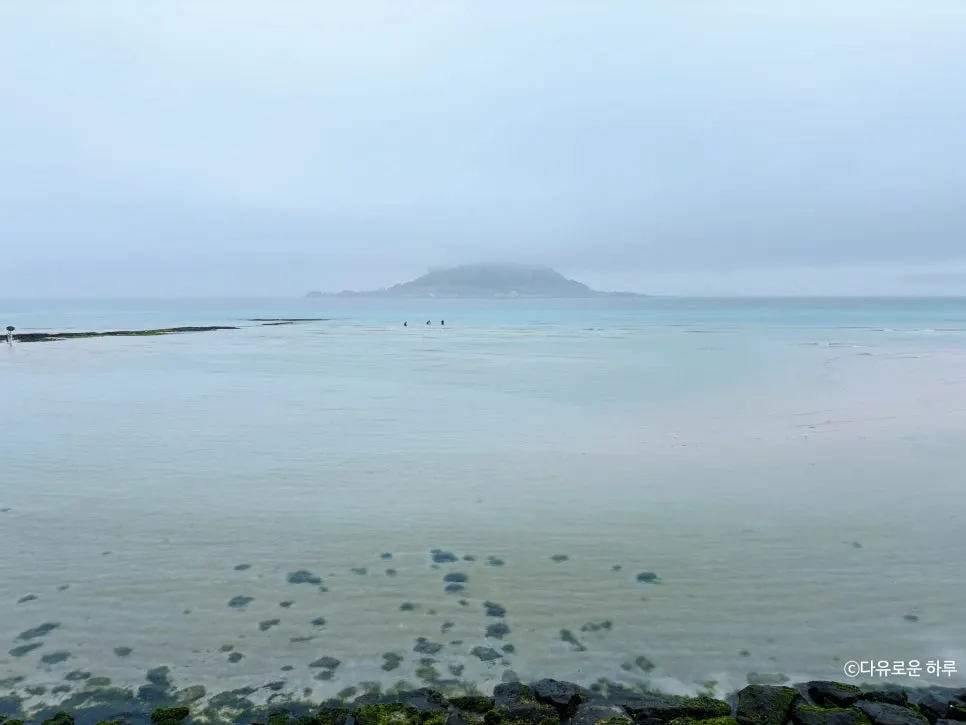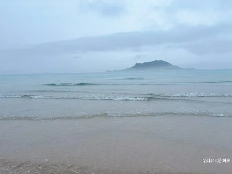 잔잔한 파도 소리, 흐린 하늘, 그리고 비 오는 날의 제주 바다