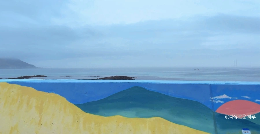 바다와 하늘이 몽환적인 색감으로 물들어 있었어요.