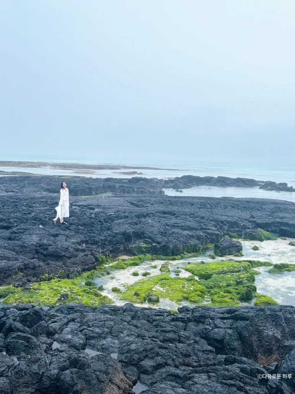 해변 오른쪽 바위 구역엔 초록 이끼랑