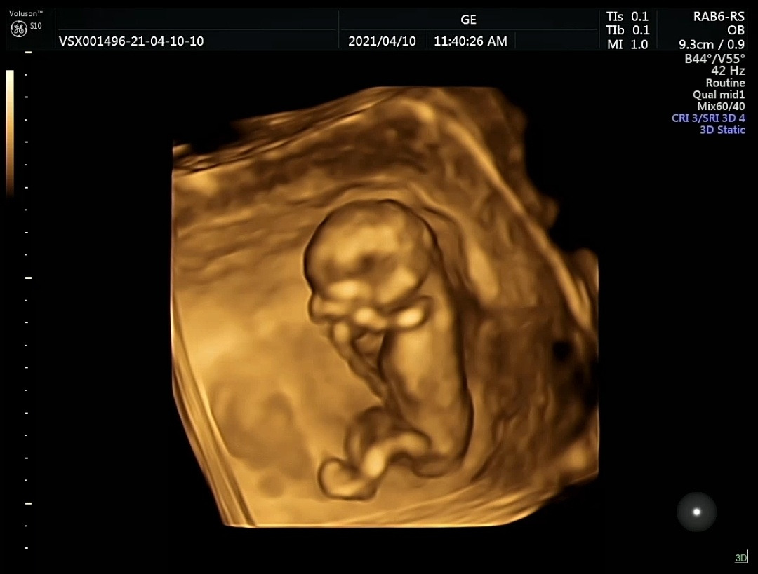 나의 첫 입체 초음파. 저 녀석 유독 발이 커 보이는 걸.