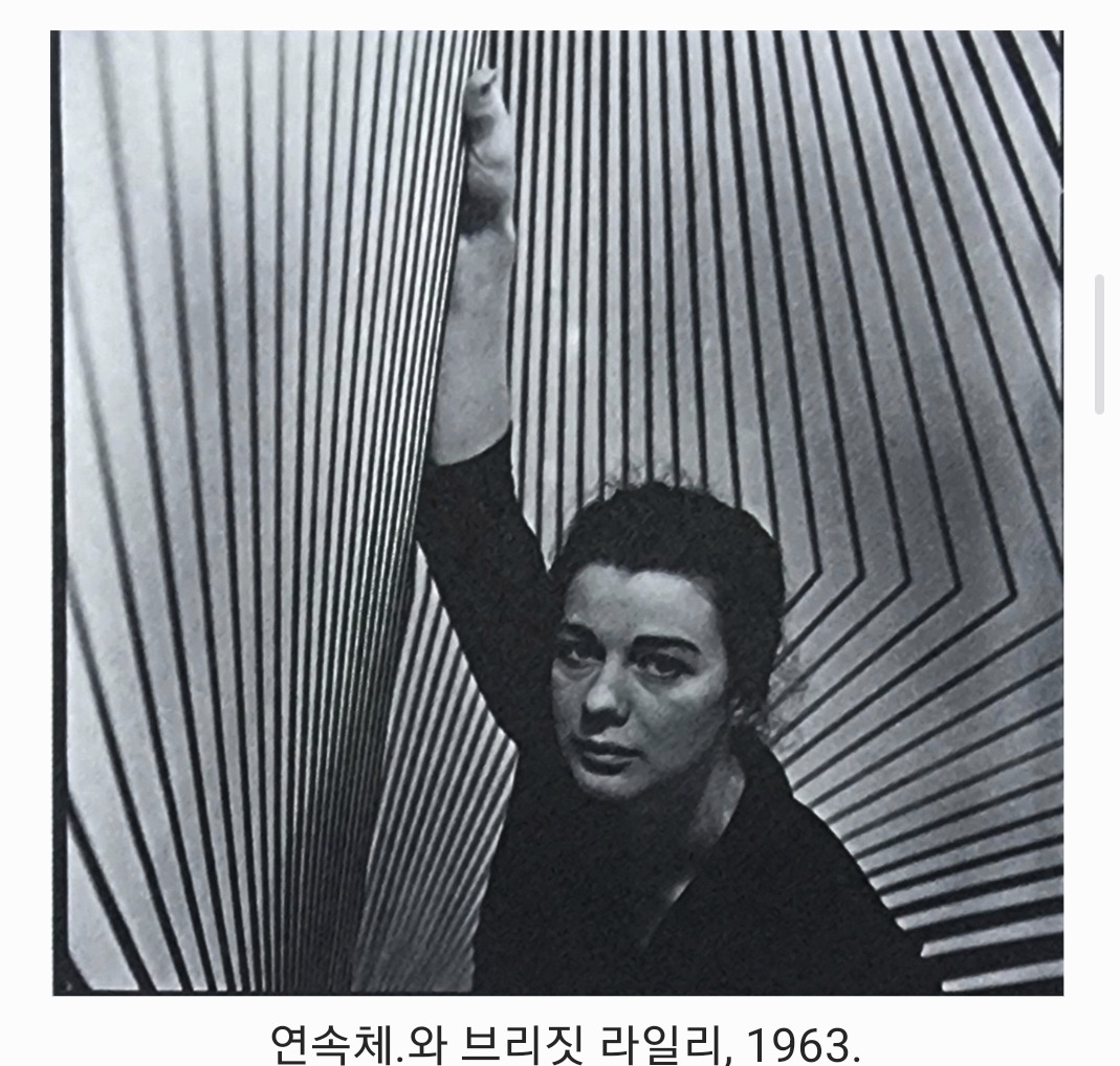 라일리는 서서히 희미하게 빛나면서 사라지는 그림을 그리는 실제 광경을 그리는 것이 아니라 캔버스 위의 에너지로 진동으로부터 시작하는 것이라는 걸 사실을 깨달았다.