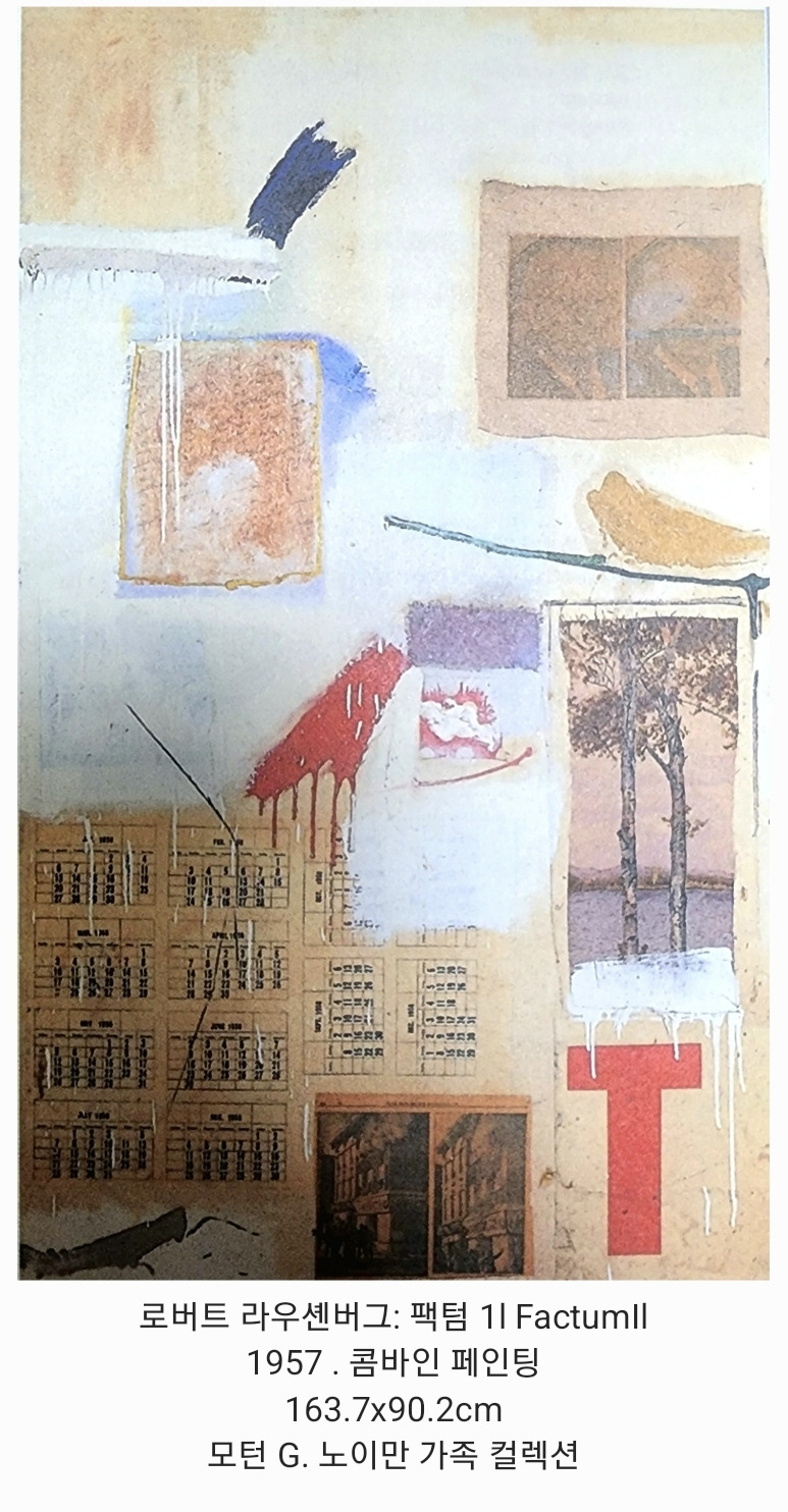 콜라주와 페인팅의 결합을 더욱 밀고 나간 라우센버그가 후기에 선보인 3차원 '콤바인 페인팅' 작품은 다양함과 무작위적 배열의 색다른 경험을 제공하며 관람객의 공간까지 홀러 침투한다.
