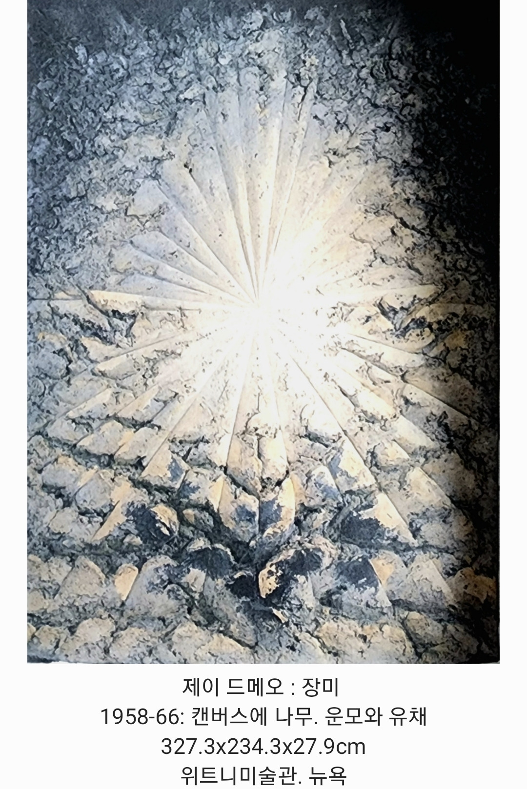 게다가 물감이 1톤이나 쓰였고, 작품 속에는 많은 물건과 다양한 캔버스들이 묻혀 있다. 이 걸작은 회화와 조각, 유기체와 우주의 결합체라 할 수 있다.