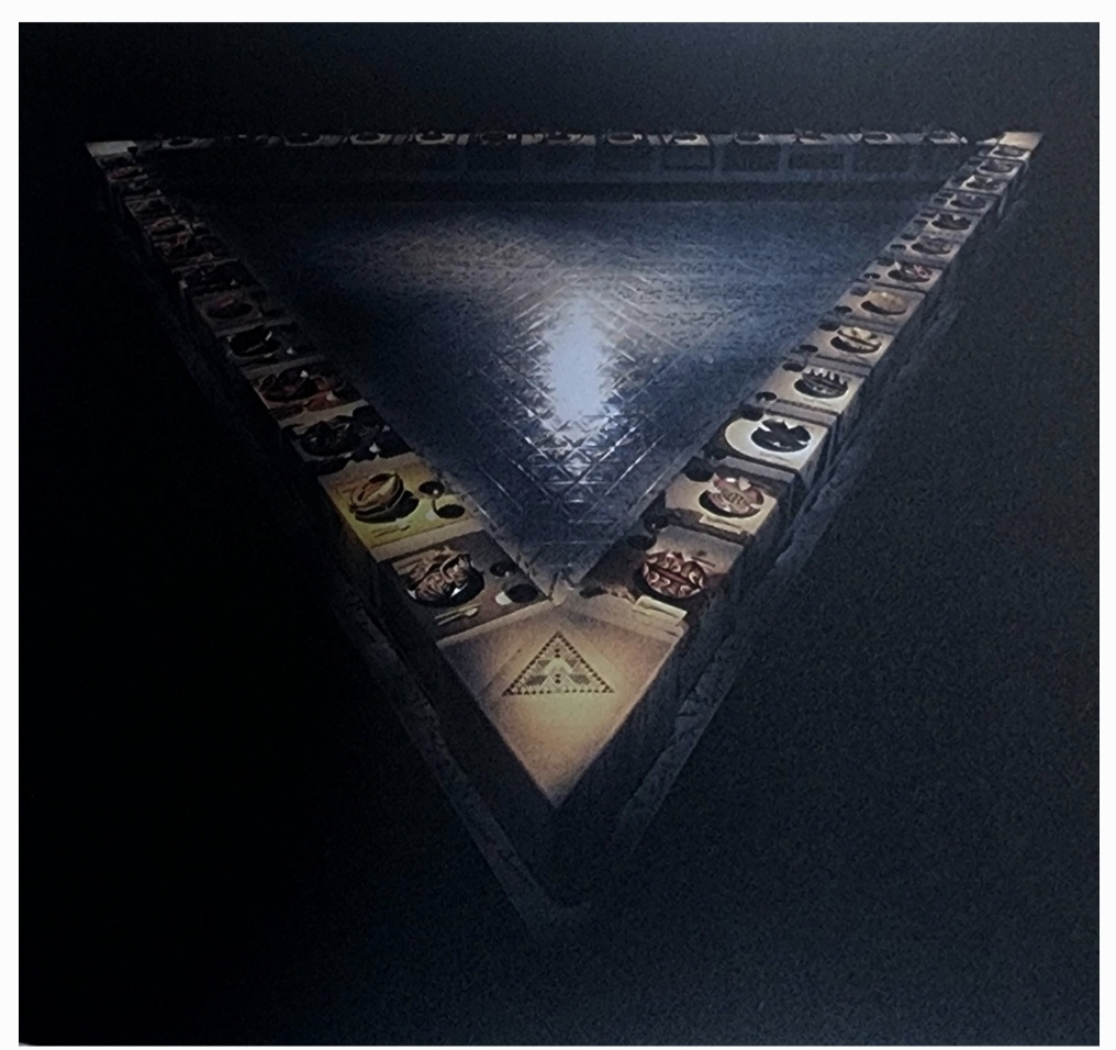 이 작품은 39개의 세라믹 접시들이 놓인 대형 삼각형 테이블로 각 접시는 위대한 역사적, 신화적, 문화적 여성 인사들을 기념하는 채색된 입술 형상으로 장식되어 있다.