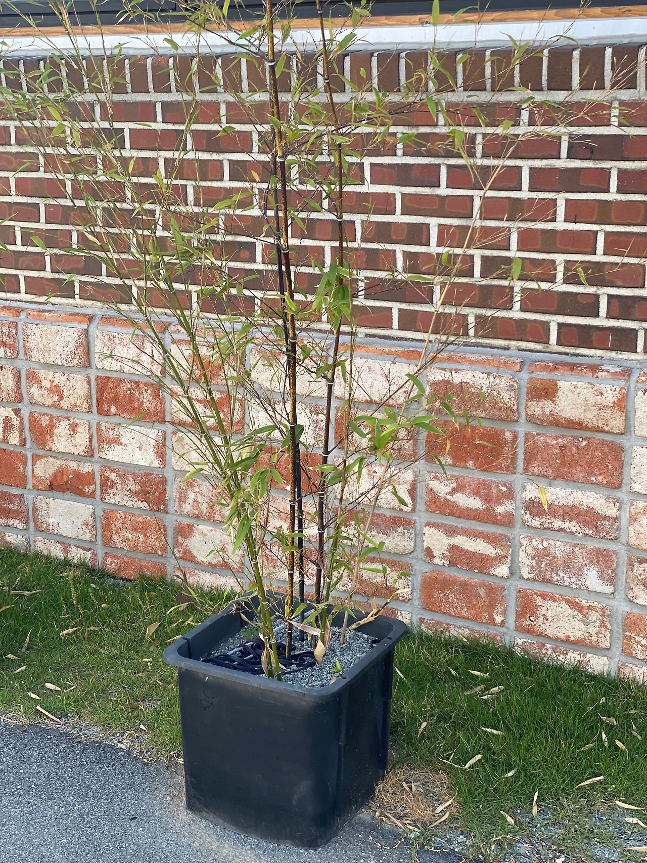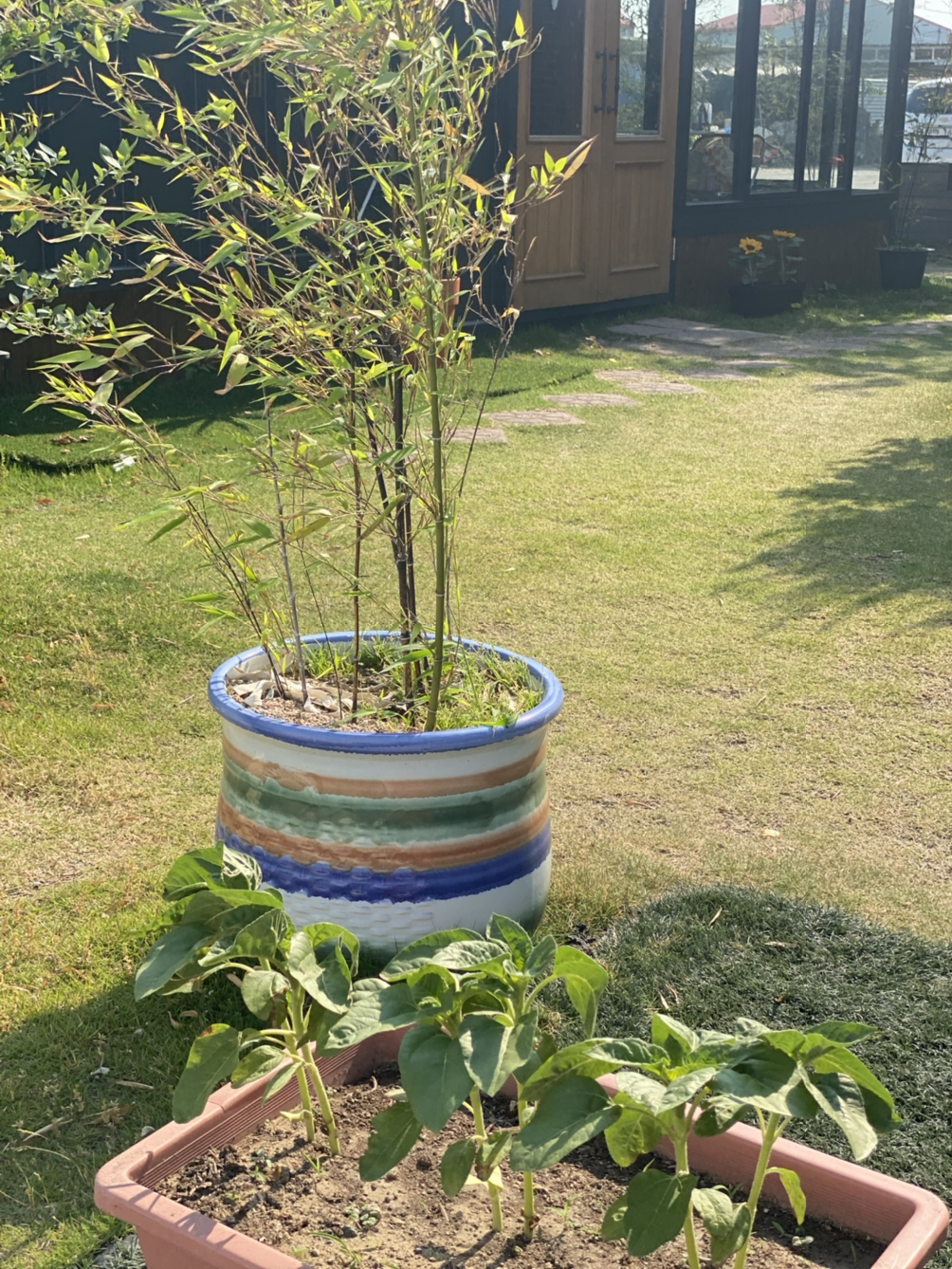 가장 먼저 만난 식물은 바로 예쁜 화분에서 시원하게 자라고 있는 오죽과 해바라기들입니다.