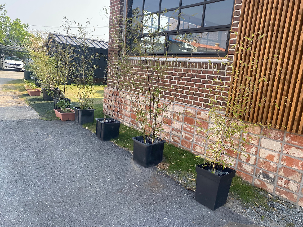 온, 든해 카페는 입구부터 많은 식물들이 우리를 맞이하고 있었습니다. 시원한 오죽들이 카페의 입구에 나란히 서서 카페 손님들에게 인사하는 것 같았습니다.