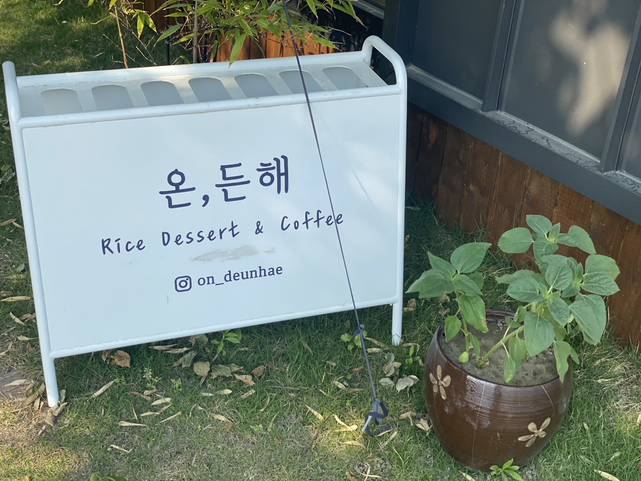 카페 온, 든해라는 예쁜 이름과 Rice Dessert & coffee라는 문구가 온, 든해를 처음 방문한 우리를 설레게 합니다.