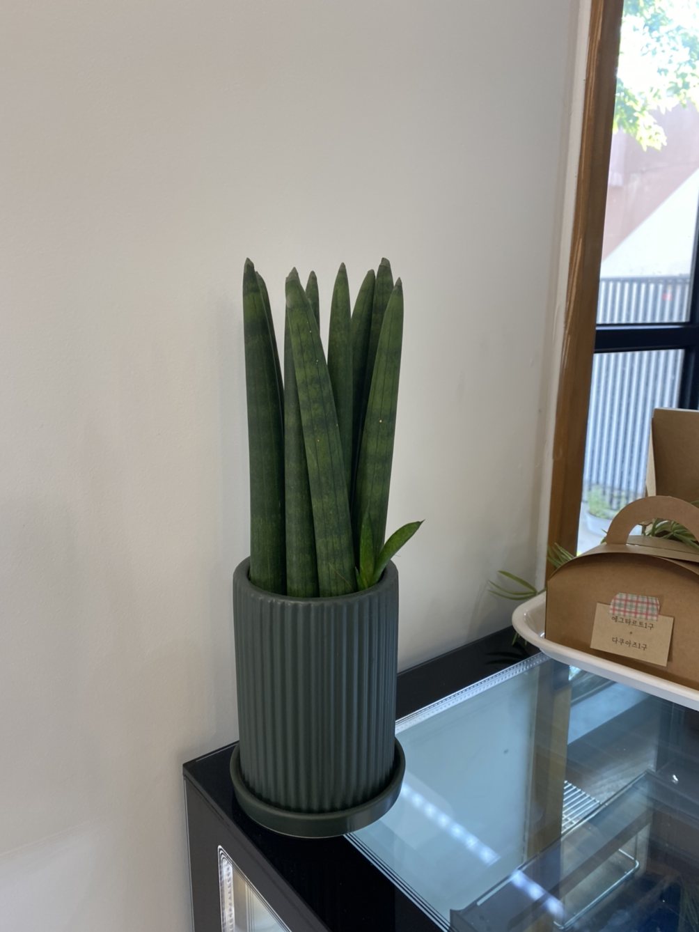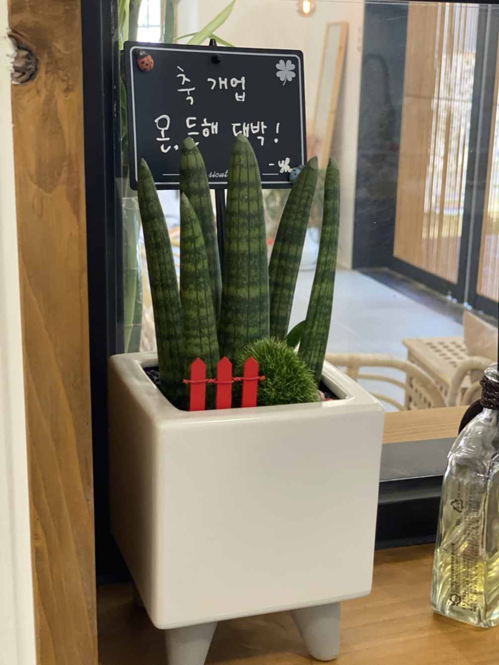 주문대 뒤편의 공간에도 작은 스투키가 개업 축하를 바라는 이의 마음이 담긴 화분에서 자라고 있었습니다.