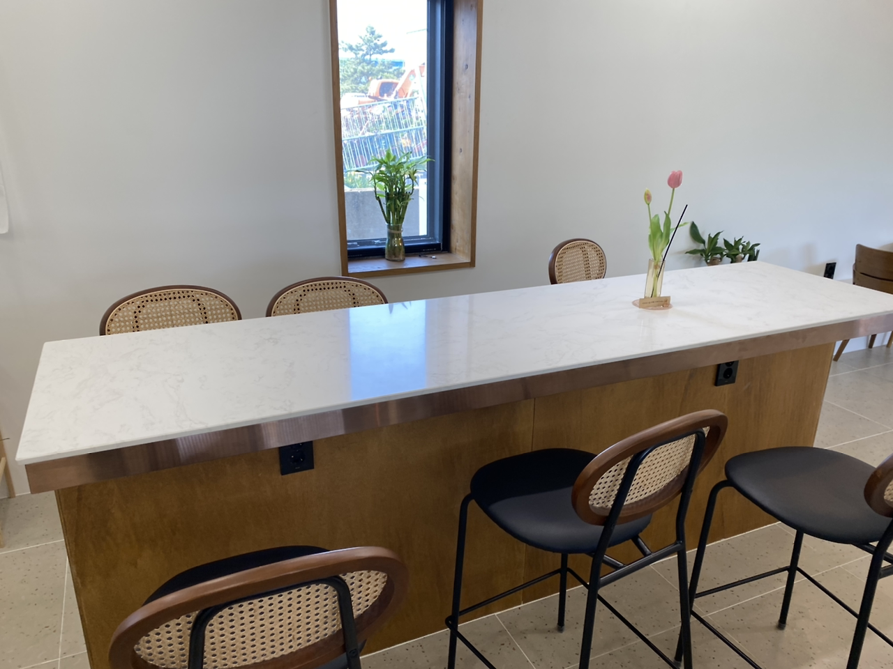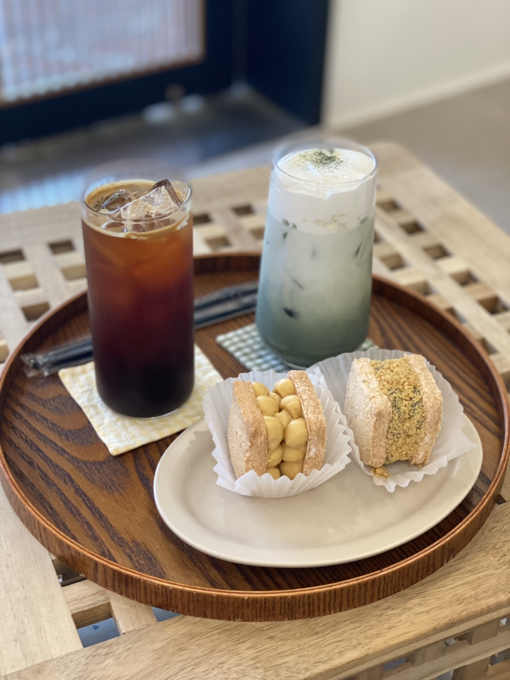 우리도 카페의 한 공간에 자리를 잡고 쌀 디저트, 쑥크림라떼 그리고 커피로 즐거운 시간을 보냈습니다.