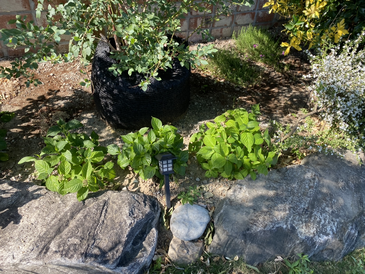 블루베리 앞에 옹기종기 모여있는 초록 초록한 산수국들