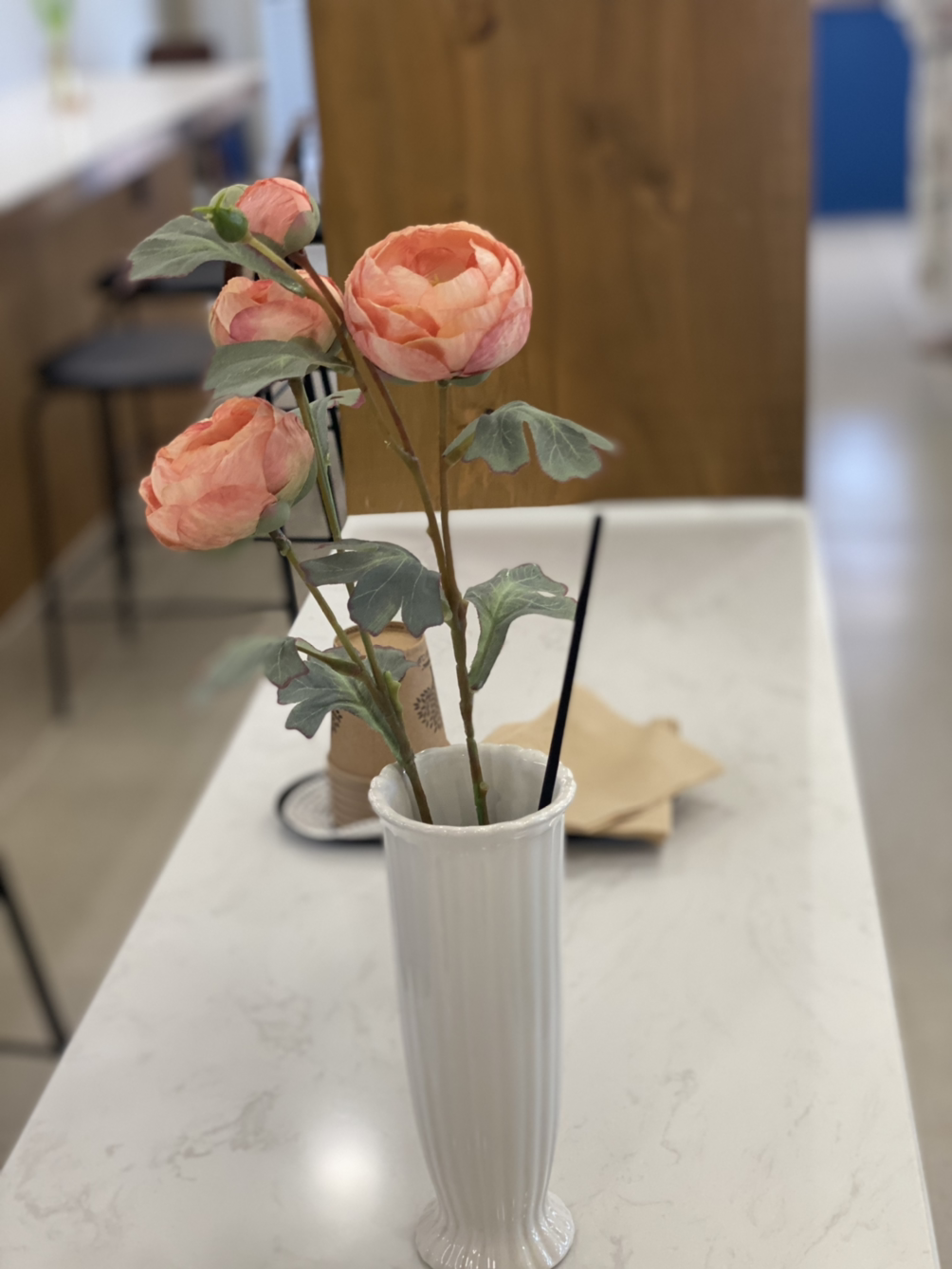 테이블들이 있는 공간으로 가는 길에 만난 예쁜 꽃과 화병입니다.