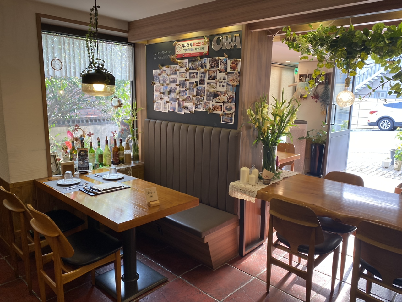 오라(ORA)는 남천동의 어느 조용한 골목에 위치한 인테리어가 아름다운 레스토랑입니다.