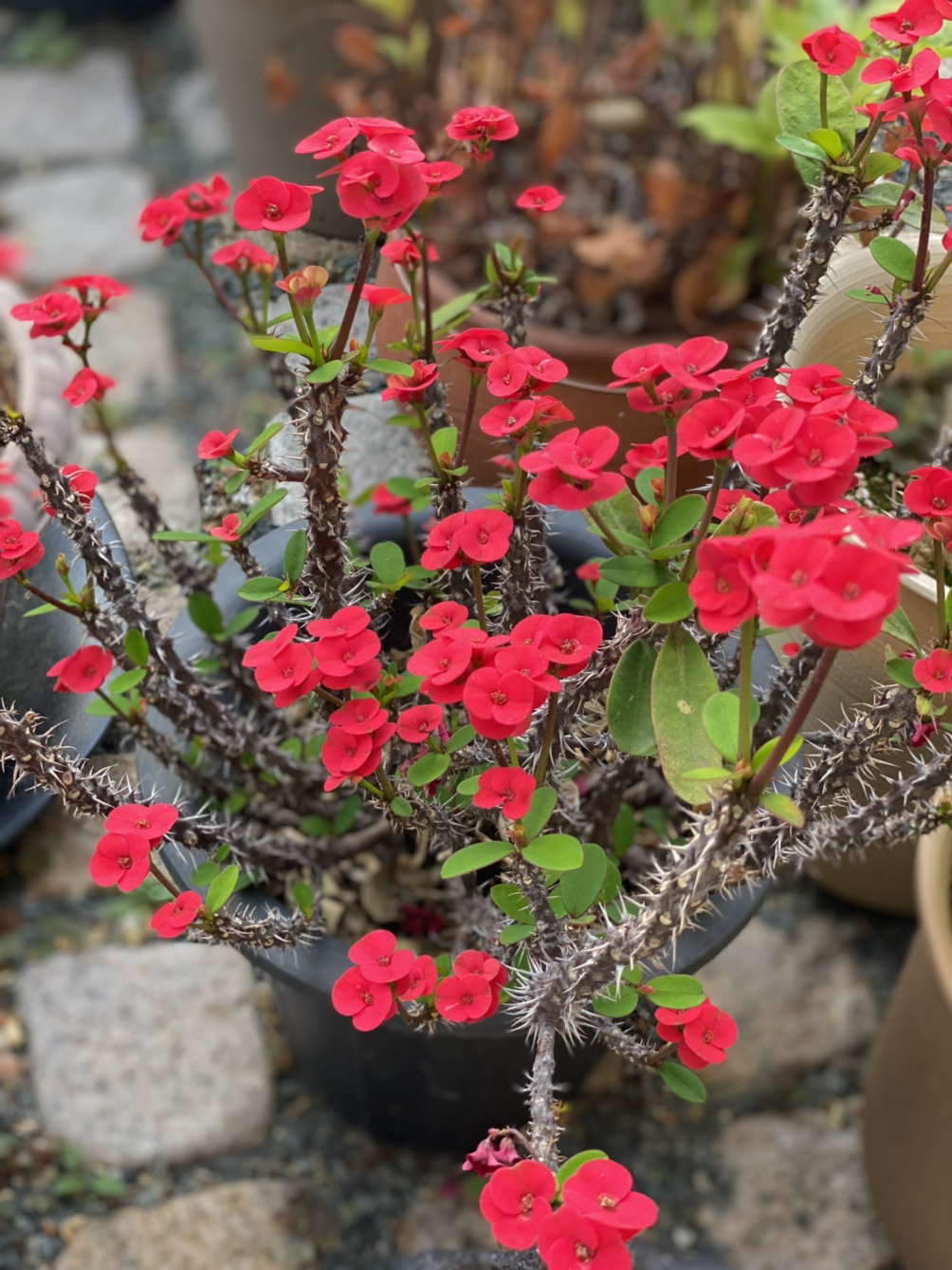 예수님의 십자가 고난 시 이 꽃기린으로 가시면류관을 만들었다고 합니다. 그래서 예수꽃이라고도 불립니다.