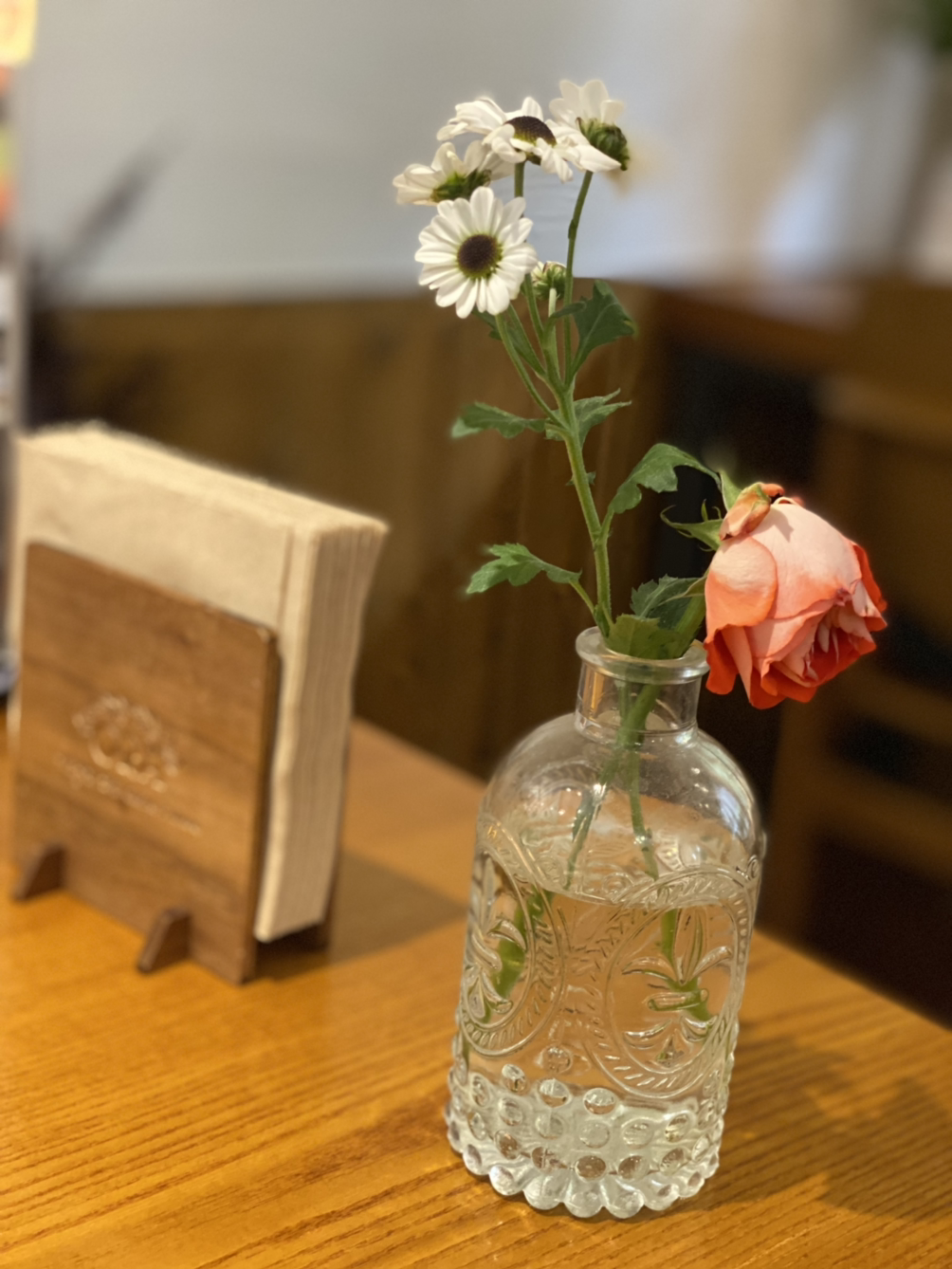 테이블 곳곳에는 이런 예쁜 화병이 있어 손님들의 마음에 기쁨을 더합니다.
