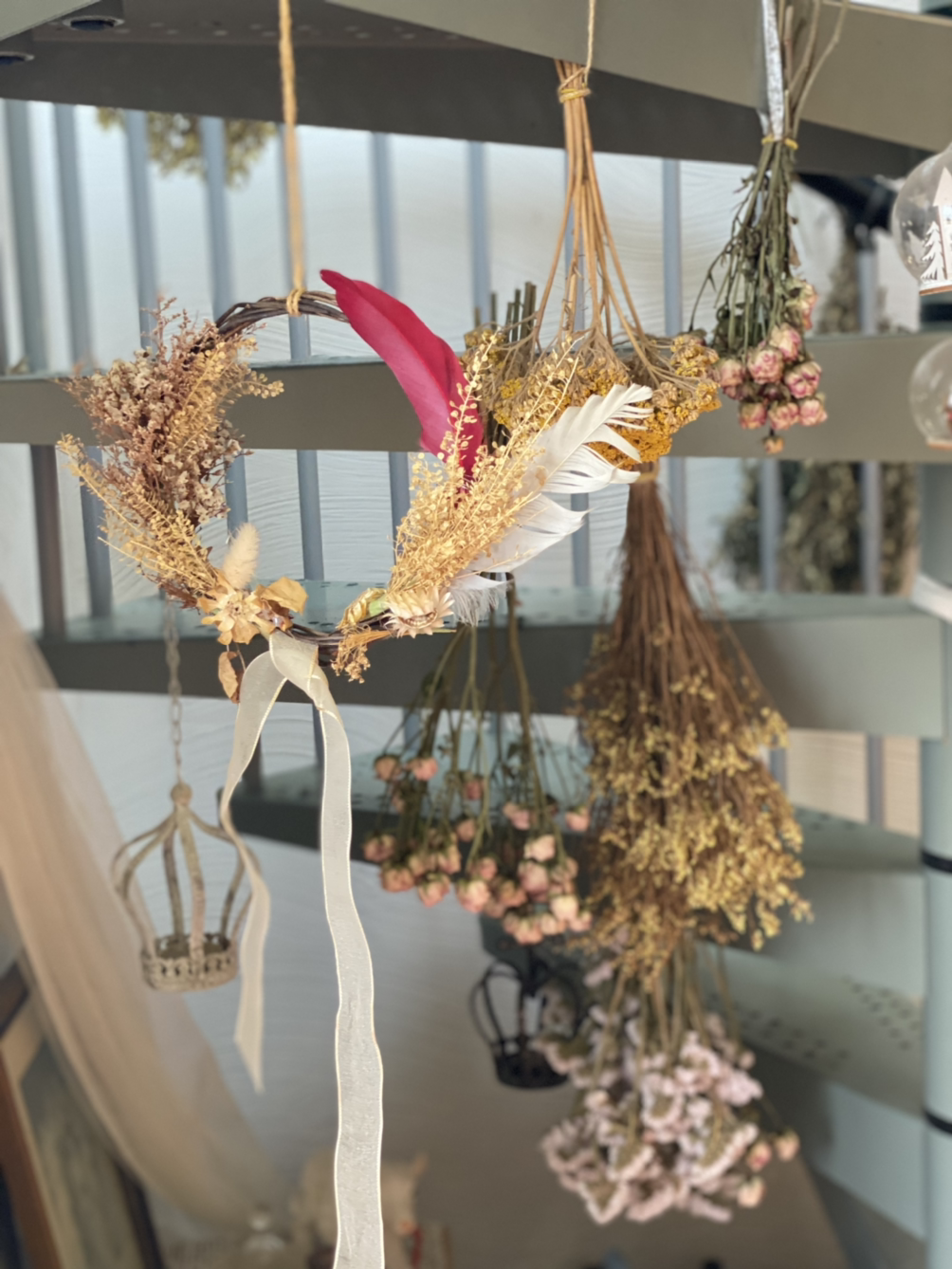 옥시페탈룸과 드림캐쳐가 공간 인테리어의 마무리를 장식하고 있습니다.