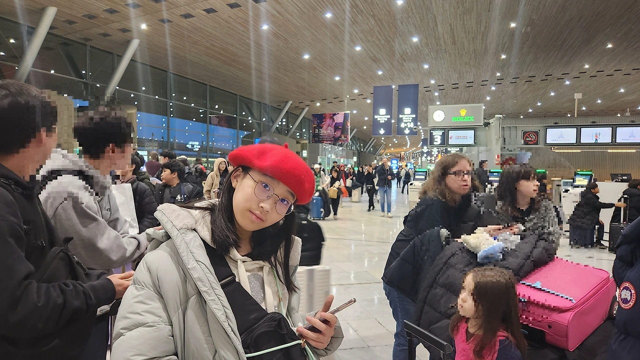 출국절차를 마치고 우리가 이동했던 곳이 프랑스 입국절차하는 곳이었다. 이 사실도 바로 알지 못했고 여기저기 사방을 뛰어다닌 후에 알게 되었다. 잘하지 못하는 영어로 설명을 해보지만 인사하고, 물건사고... 하는 정도의 실력으로는 부족했다. 외국에서 낯을 가리고 있던 딸에게 비행기 티켓을 쥐어줬다.