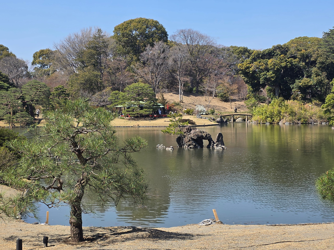 나그네에게 나아갈 길을 일러준다는 다정한 이름의 언덕, '시루베노오카(指南岡)'에서 잠시 발길을 멈춘다. 리쿠기엔의 심장인 대샘물(大泉水)은 제 몸을 넓게 펼쳐 하늘의 빛을 오롯이 비추느라 여념이 없다. 그 평온한 질서를 가로지르며 낮게 자리 잡은 묘한 바위 하나가 눈에 들어온다. 리쿠기엔 88경 중 하나인 ‘와룡석(臥龍石)’이다.