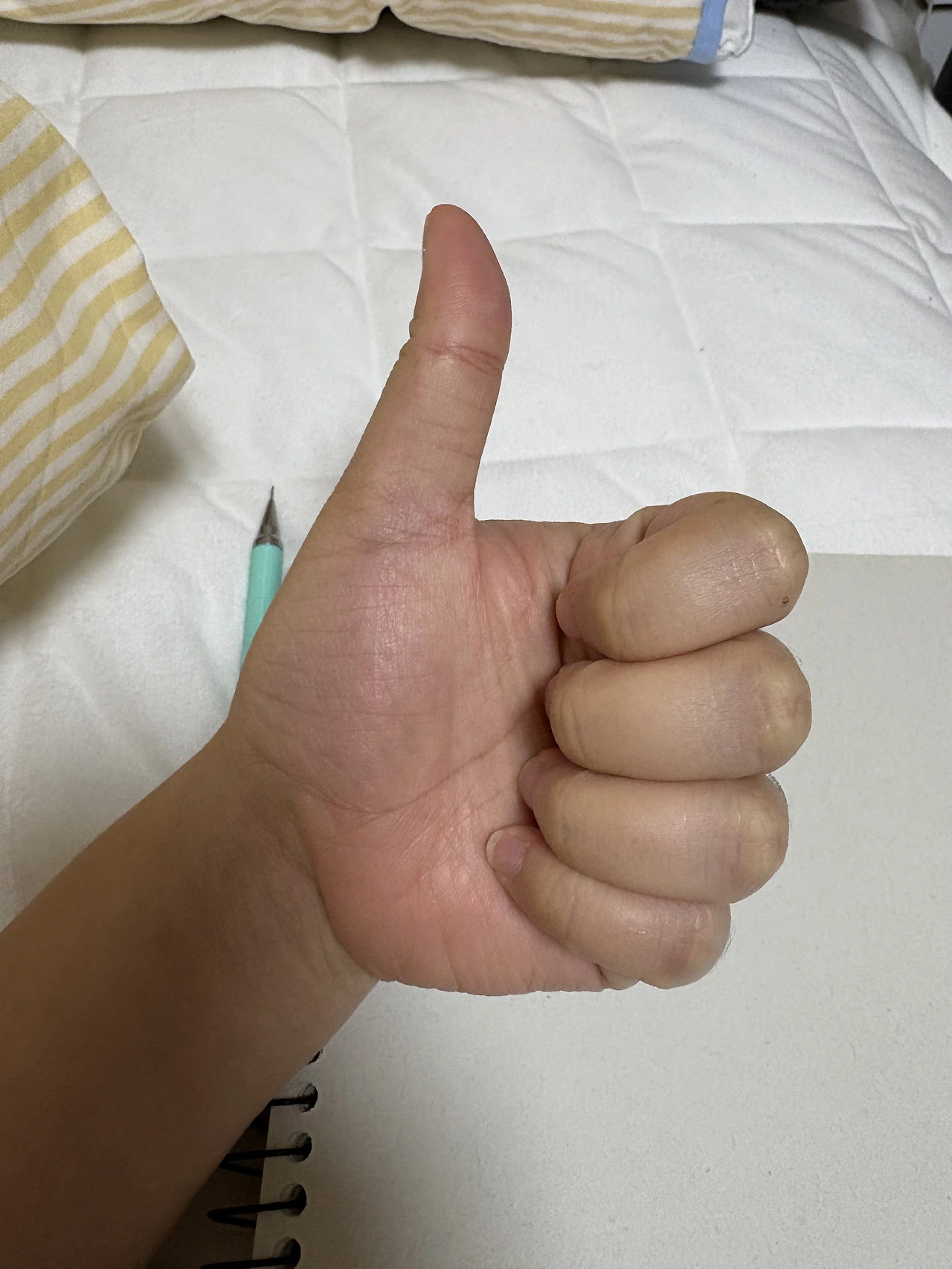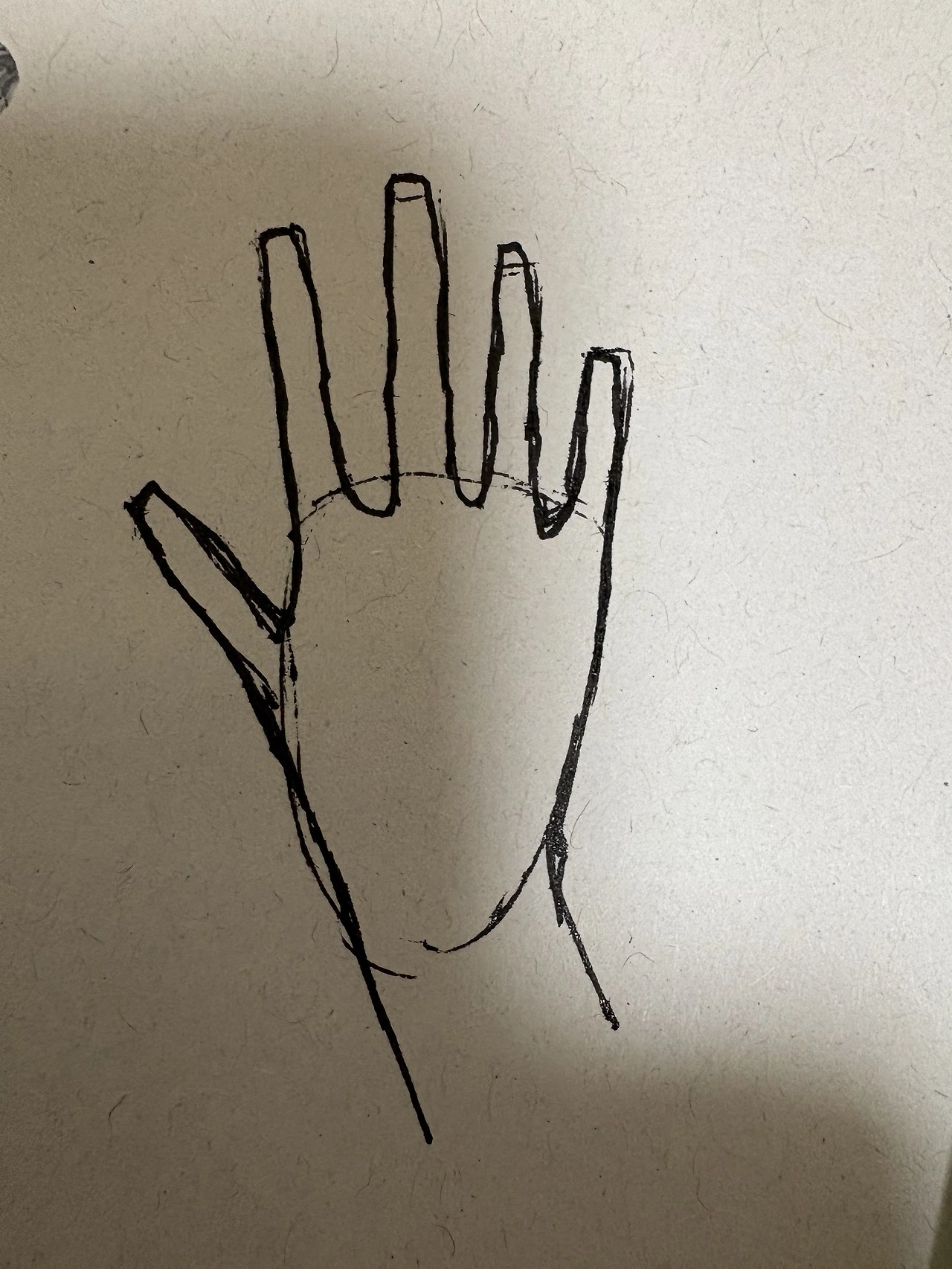 손바닥 타원으로 먼저 잡아주고 소시지 모양으로 손가락 형태를 잡아 초안을 그린 후 덧그려 형태를 만들어보았다. 생각보다 나쁘지 않은 그림이 나왔다. 남편의 칭찬을 먹고 신난 나는 어려운 걸 그려보고 싶어졌다. 사진첩을 뒤적거리다 그리기 애매해 보이는 손 사진을 찾아냈다.