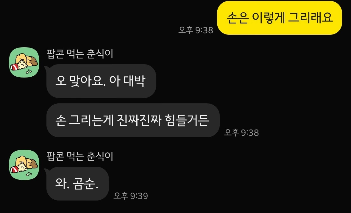 도대체 어디가 대박인지는 모르겠지만 칭찬을 받으니 신이 난다. 내 손을 찍어서 그려보기로 했다.