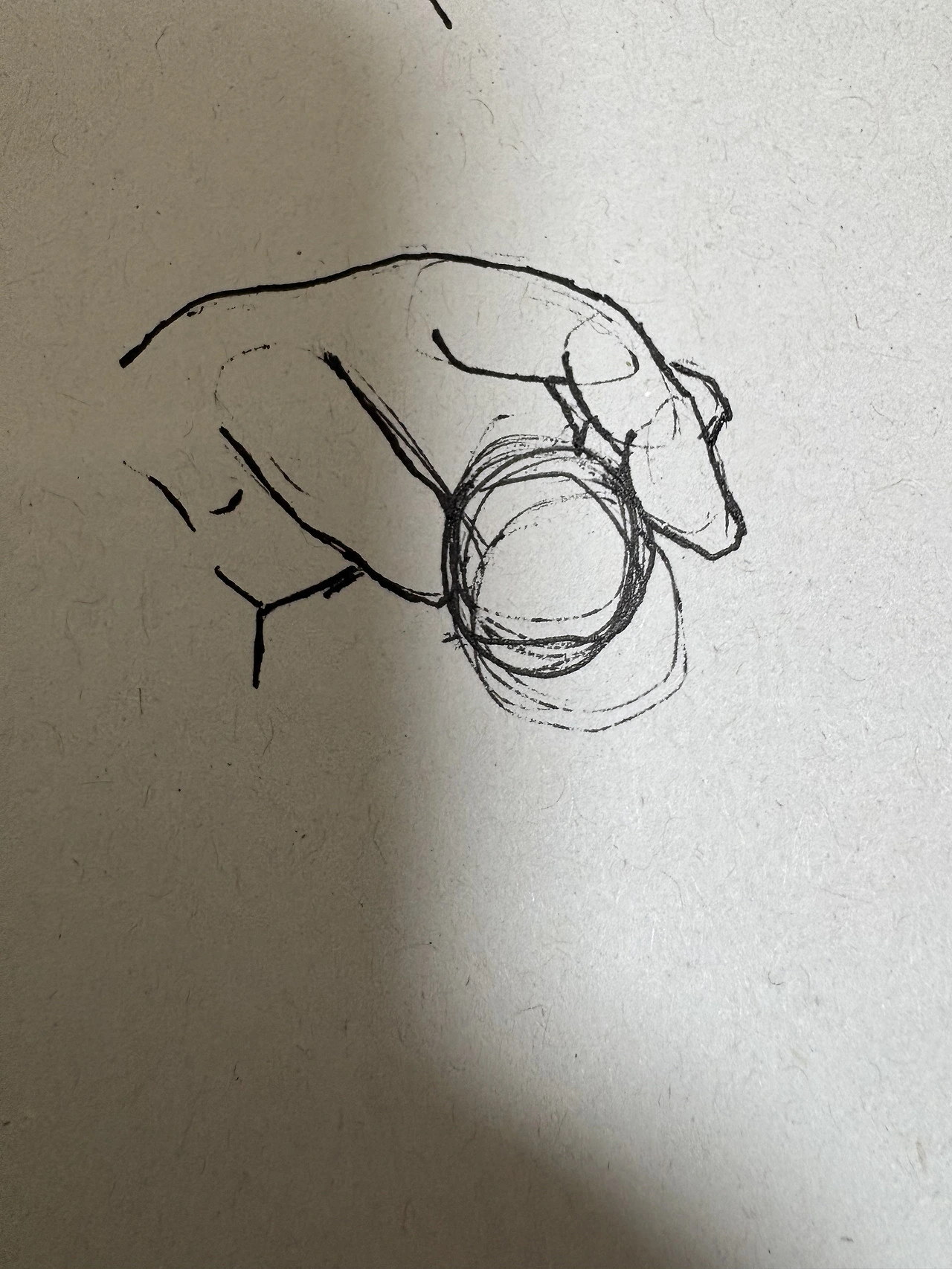일단 초안을 그려본다. 이번 손 모양은 검지 손가락이 구부러졌기 때문에 타원 3개로 손가락을 나눴다. 엄지와 검지 사이에 공을 중심으로 잡고 나머지 형태를 잡았다. 그려보니 생각보다는 잘 그려진 듯하다.