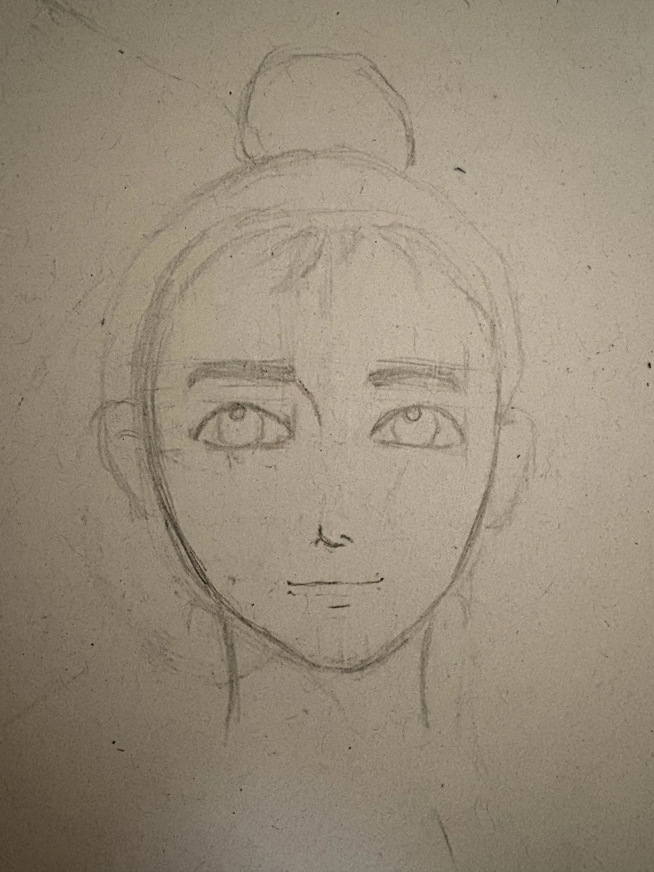 닮지는 않았지만 나름대로 귀여운 얼굴이 나왔다. 귀여운 이미지가 된 이유가 뭘까? 나의 생각이지만 둥그스름한 얼굴과 눈의 영향이 큰 것 같다. 성숙한 이미지를 그리기 위해 얼굴을 갸름하게 바꾸고 눈의 크기를 줄여본다.