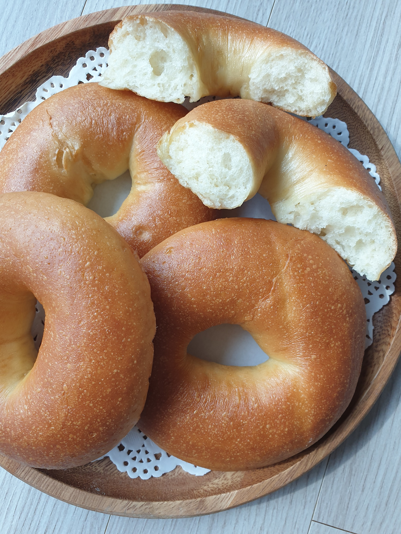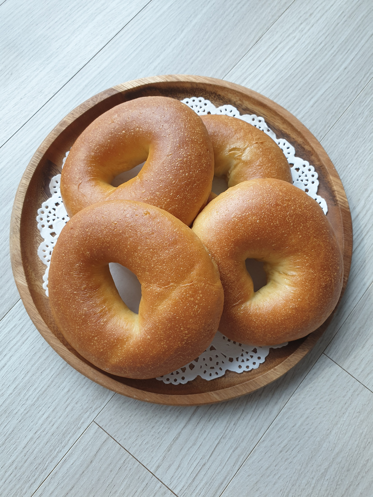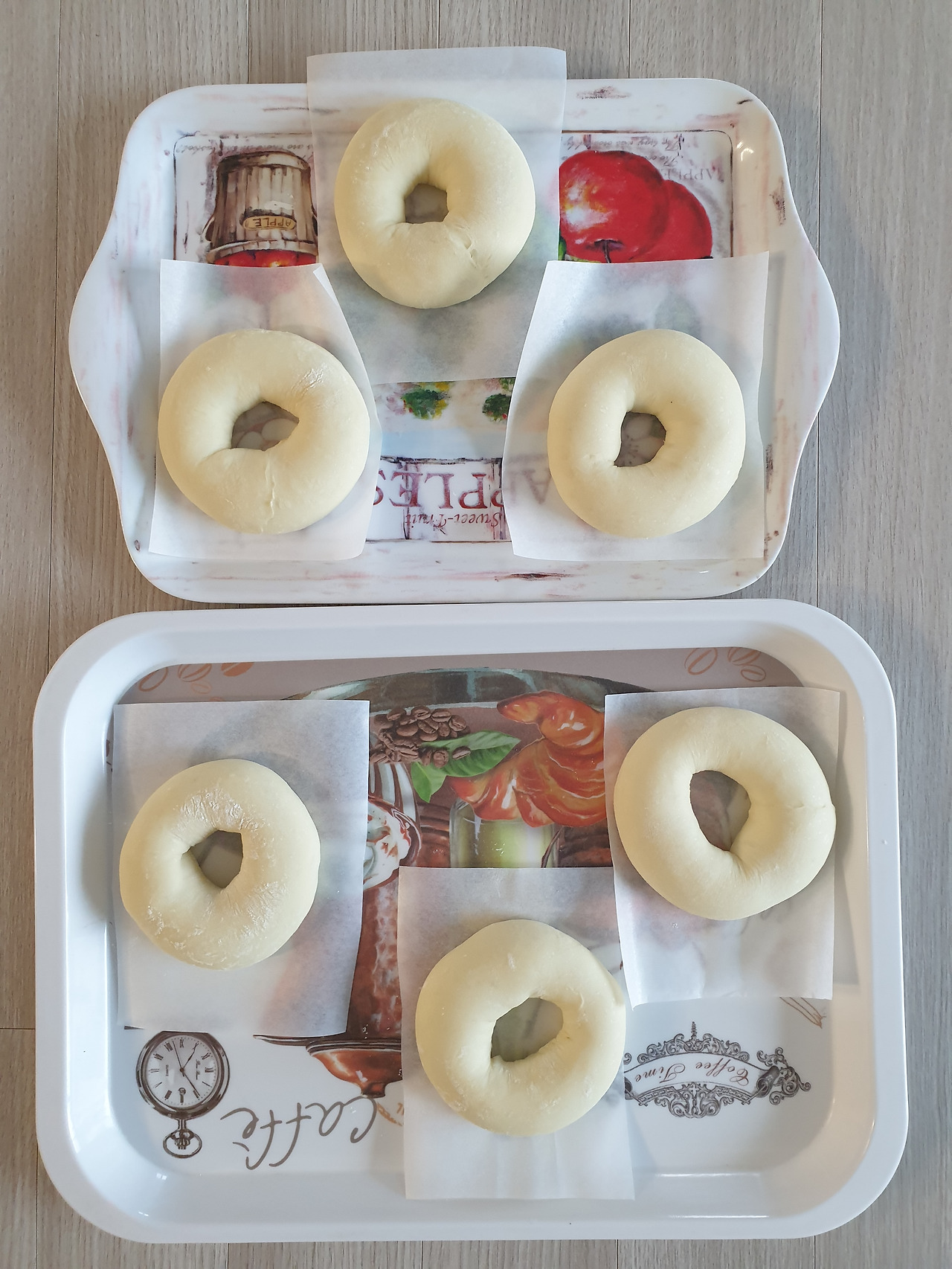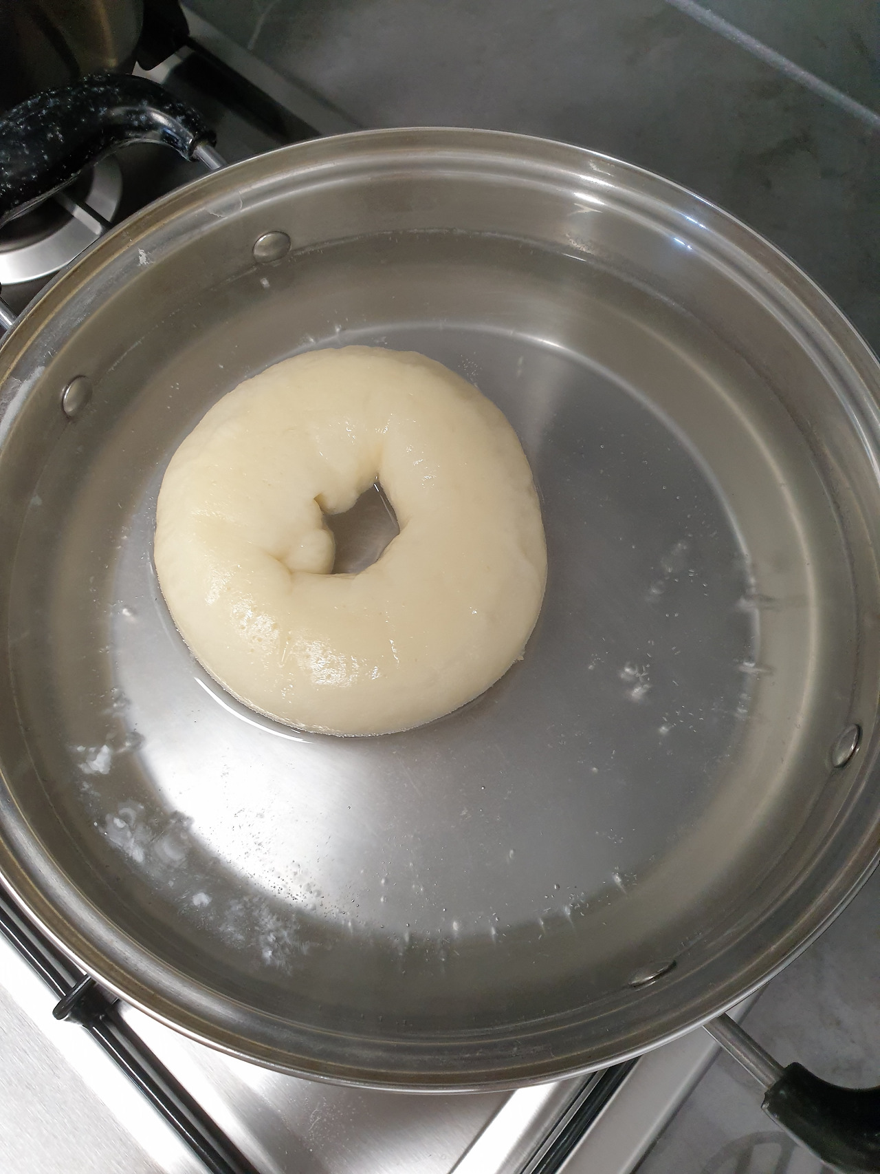 2차 발효 후에 끓는물에 반죽을 데친다.