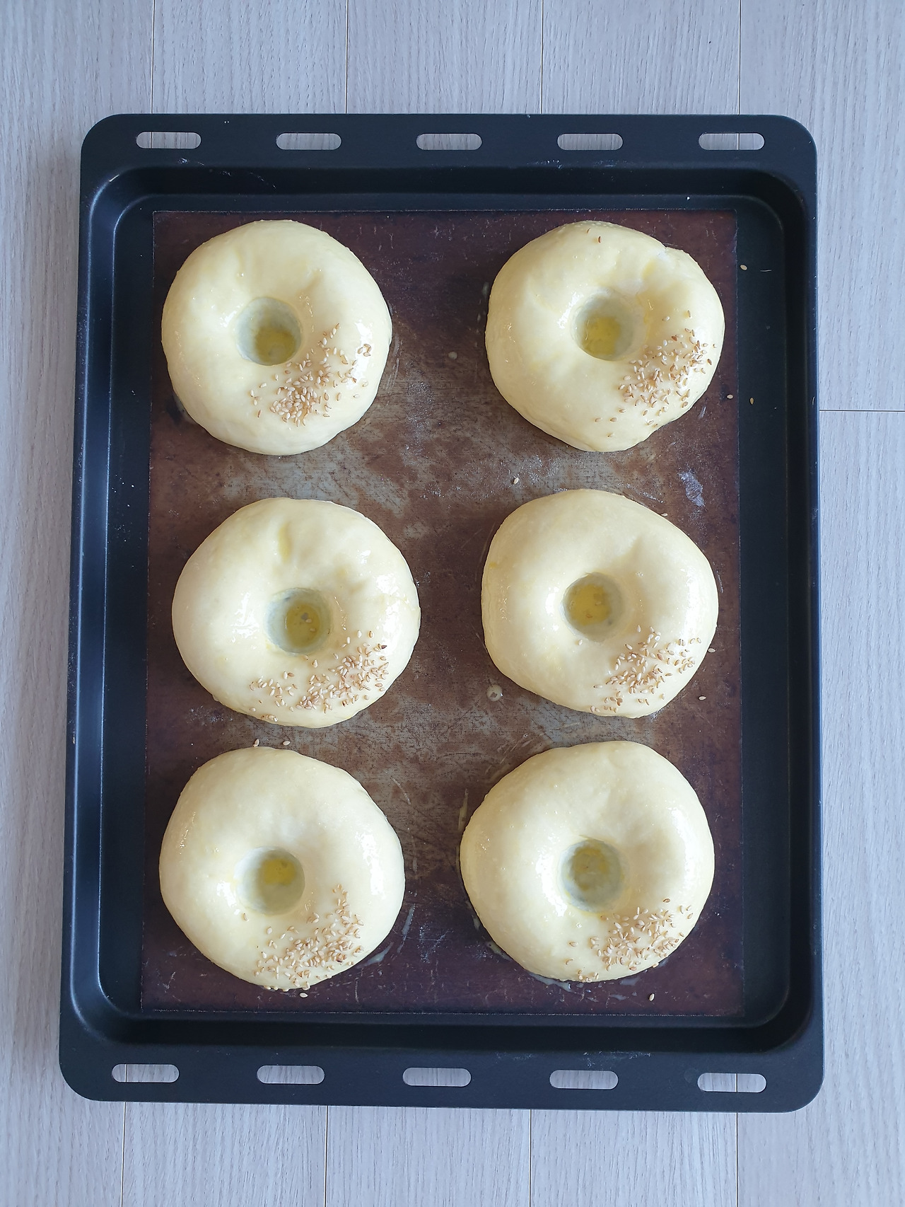 2차 발효를 끝내고 중앙에 나무밀대로