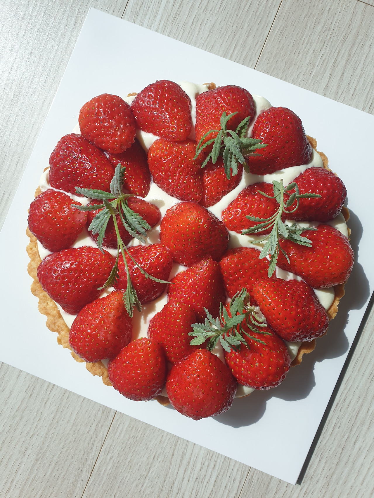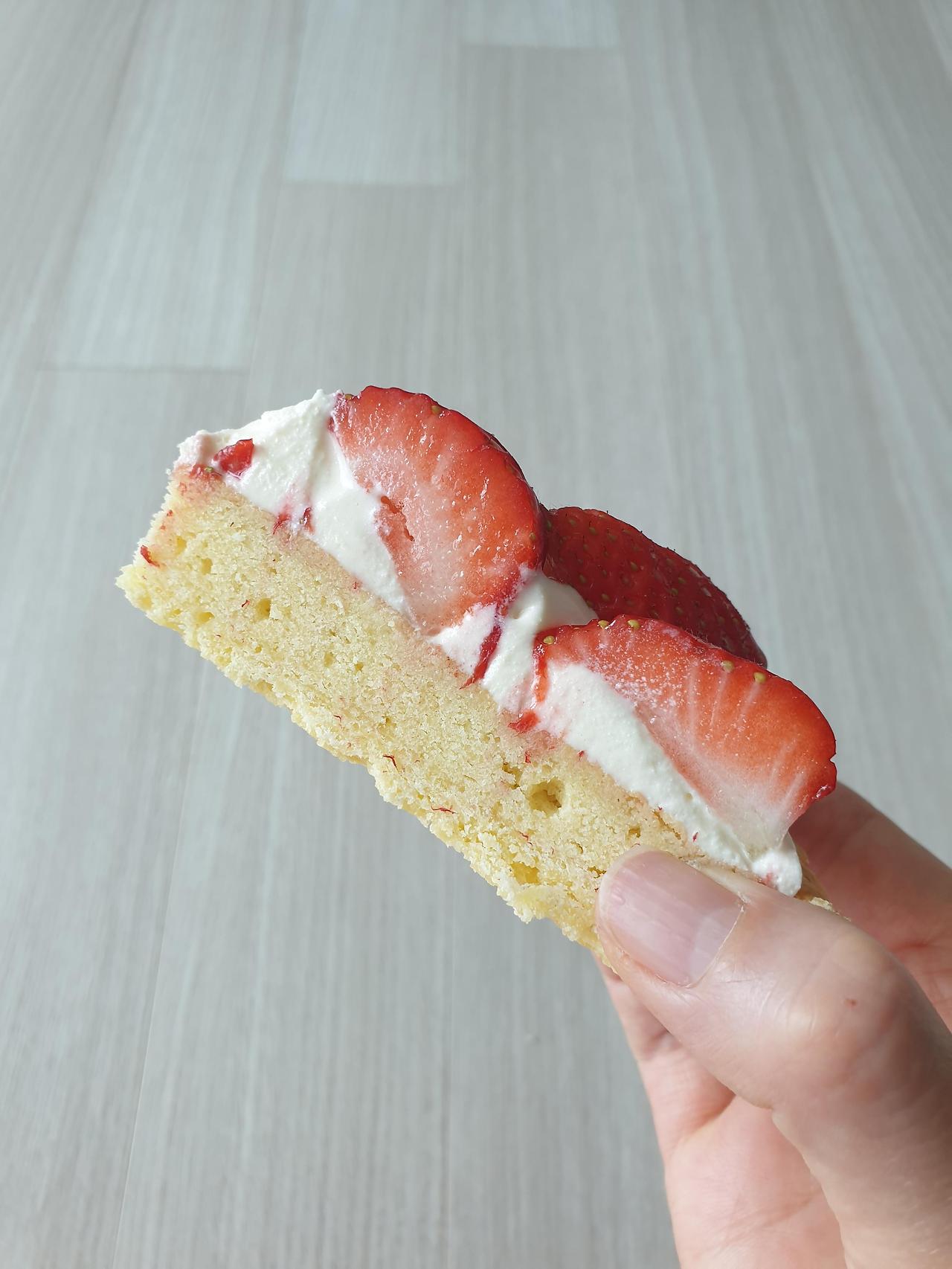 시럽을 발라서 딸기가 반짝반짝 예쁘다.