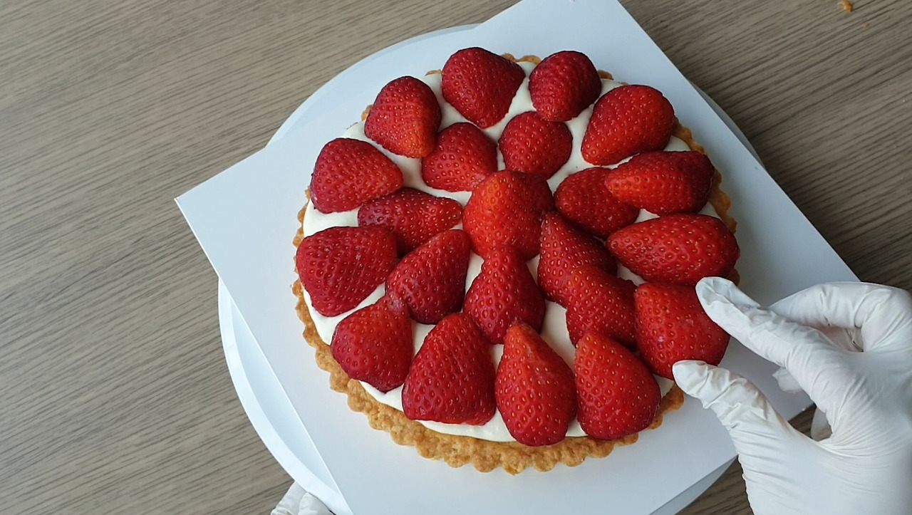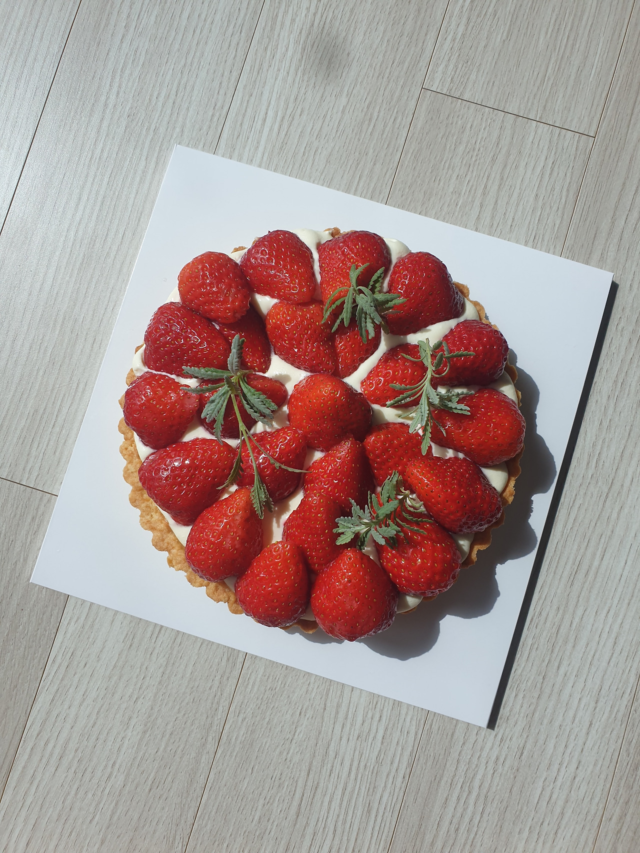 6.씻은 딸기를 키친타올에 물기를 제거한후 타르트에