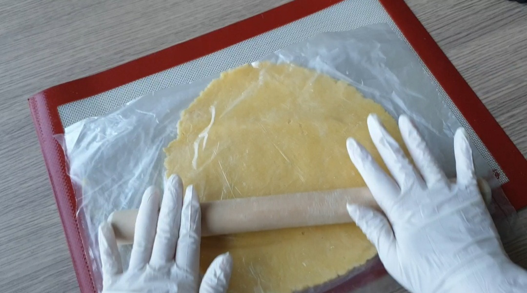 타르트지를 비닐백으로 덮어서 밀대로 동그랗게
