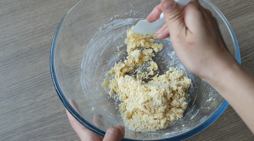 1.볼에 무염버터 50g, 설탕 30g, 계란 50g 섞고 박력분120g 체에