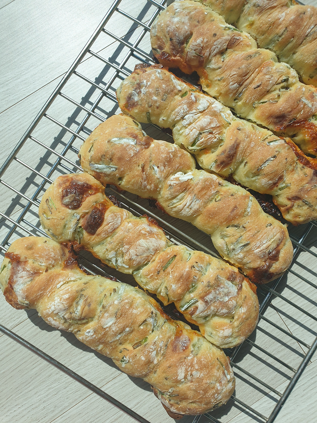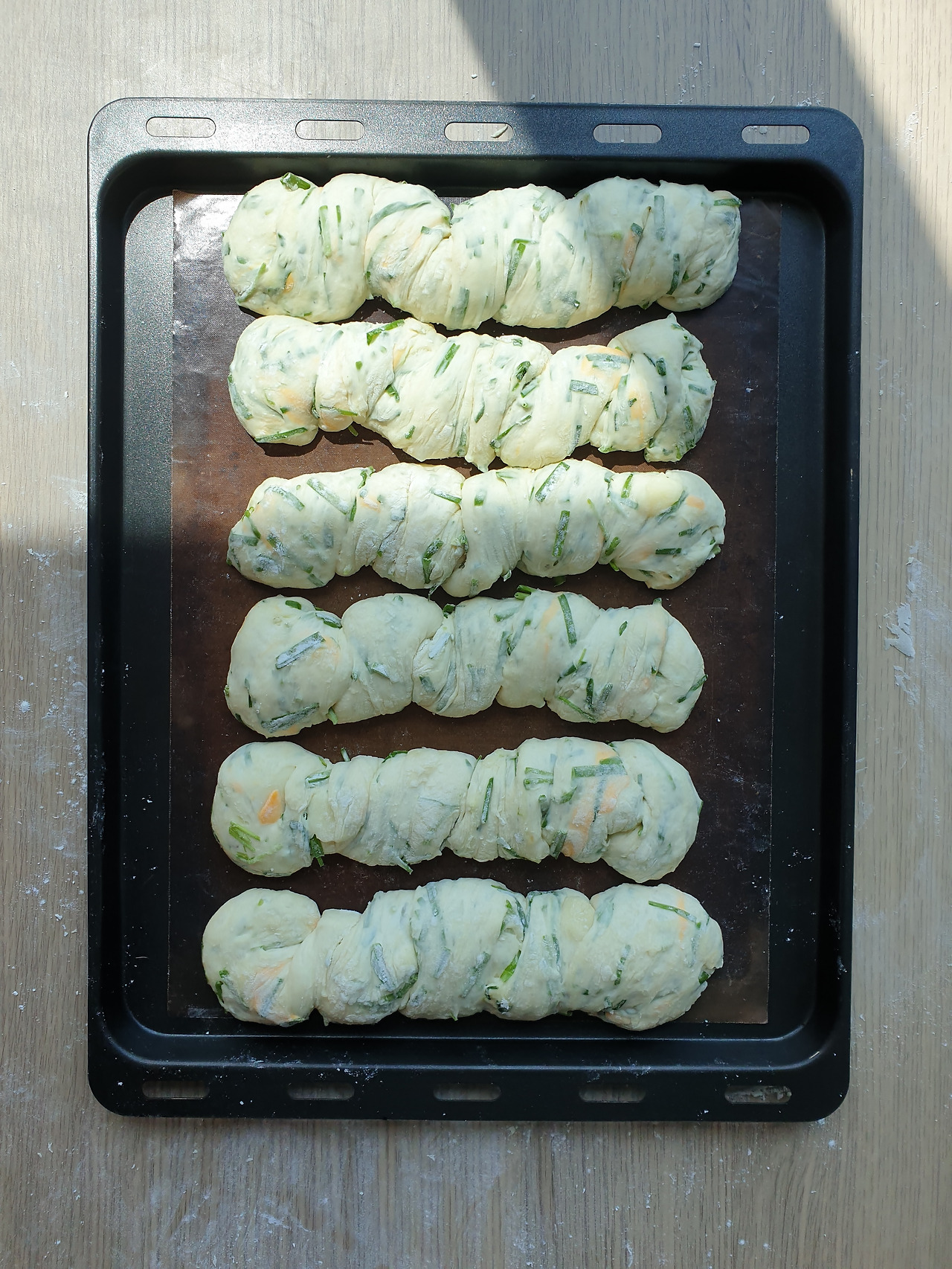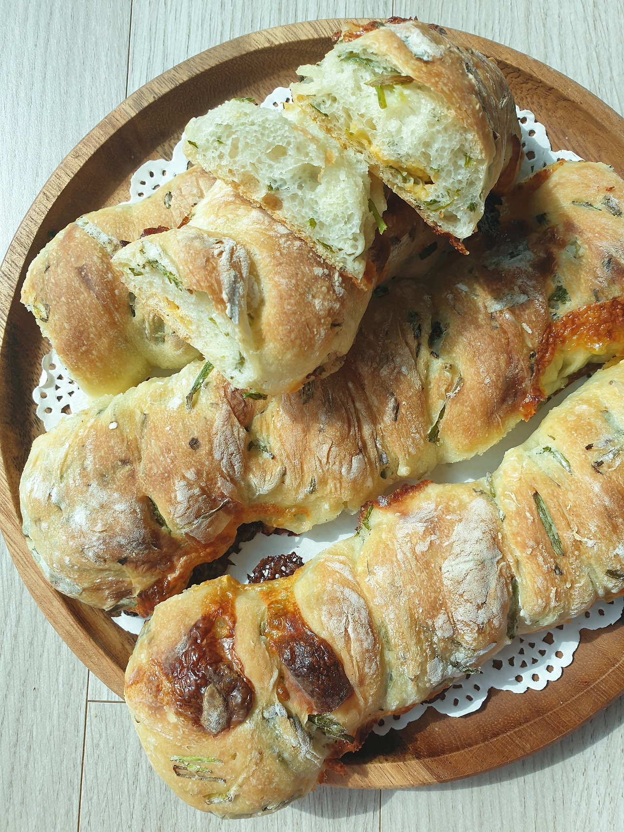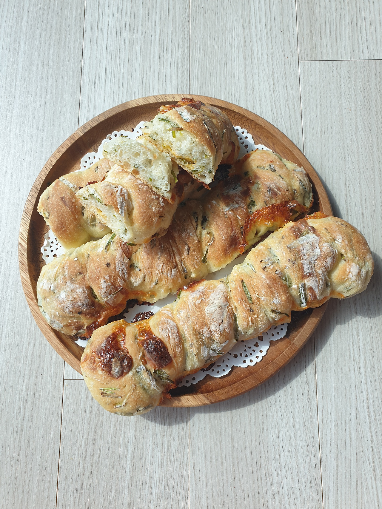 치즈와 찰떡인 부추로 빵을 만들었다.