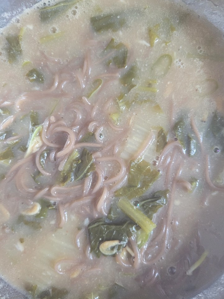 끓인 된장국에 씻은 메밀 생면을 넣고