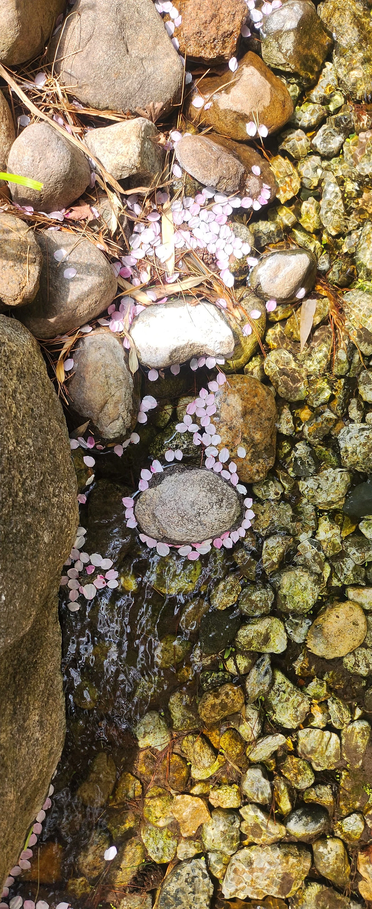 꽃잎이 돌을 감싸