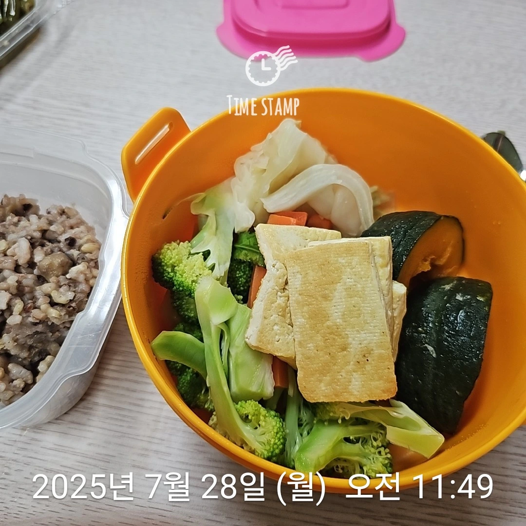 달걀 2개, 두부 반모, 현미밥 약 20g