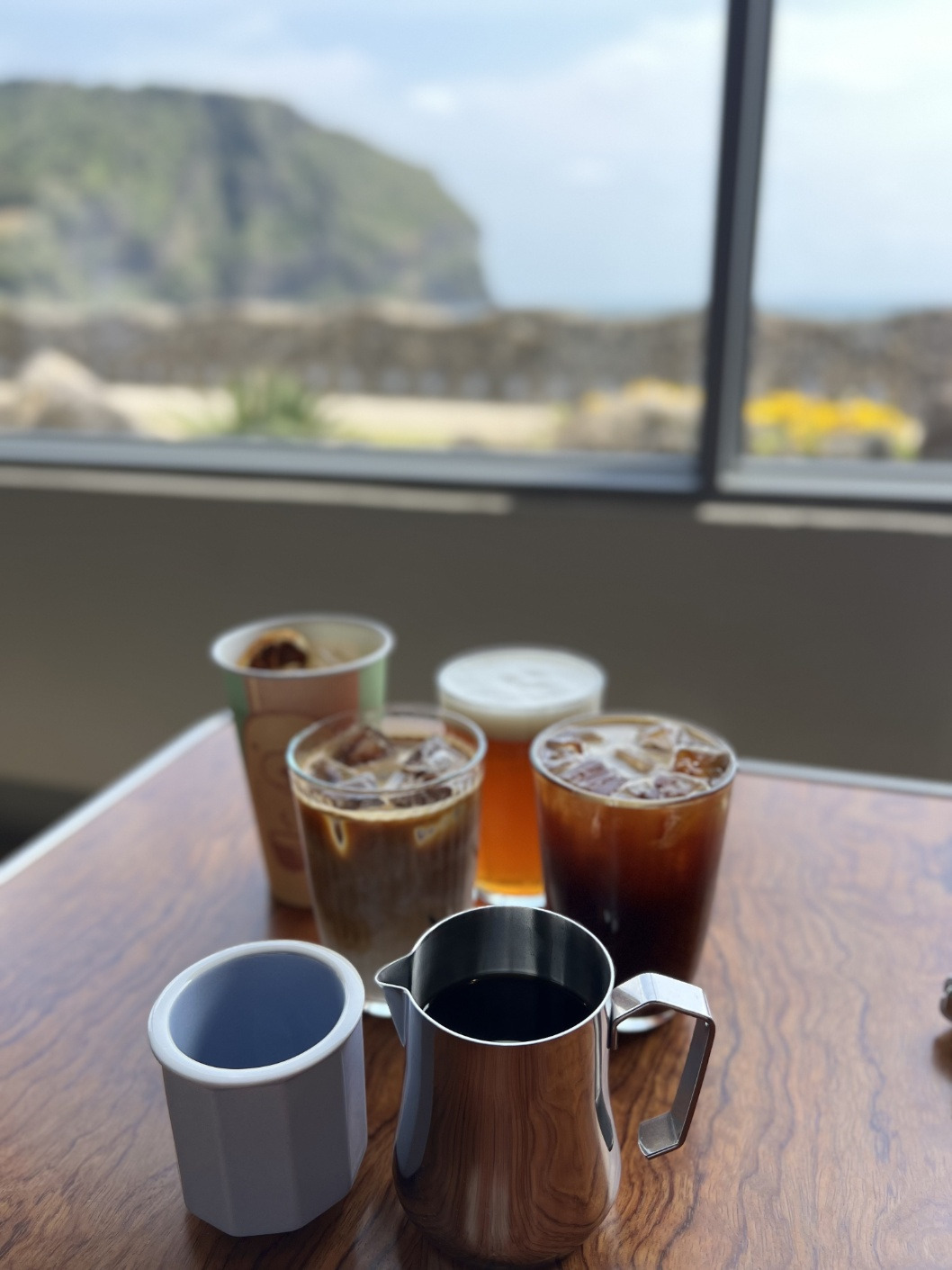 비밀의 숲에서 우리는 아부오름으로 이동한다. 아부오름(앞오름)을 올랐다 내려와서 우리는 성산일출봉에 가서 점심을 먹었다. 보말 칼국수와 해물 칼국수, 보말 전복죽, 해물파전으로 아점을 먹은 뒤 카페인 충전을 위해 프릳츠컴퍼니를 찾아서 발걸음을 옮겼다.