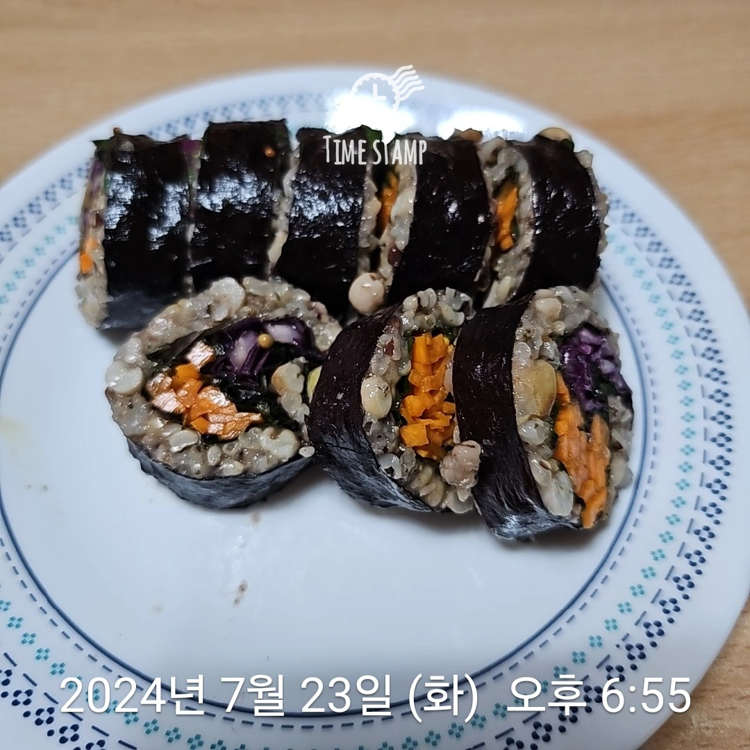 귀로는 당근과 양배추의 아삭거리는 소리가 들리는데 김밥을 먹는 게 아니라 공연장에 앉아있는 느낌이랄까.