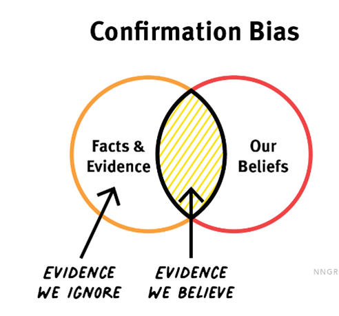 만약 차이 나는 관점을 견디지 못하고 나와 다른 의견에 대해 무조건 틀리거나 나쁘다는 식으로 반응한다면 그것은 심각한 ‘확증편향’(確證偏向·자신의 가치관/신념/판단 등에 부합하는 정보만 취사선택하고 그 외의 정보는 무시하는 사고방식)에 빠진 것이다.
