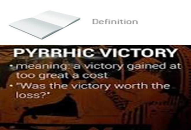 경제학에서 말하는 ‘승자의 저주(Winner’s Curse)’라는 개념과도 일맥상통하는 교훈이다. 패배나 마찬가지인 값비싼 대가를 치른 승리를 거둔 승자에게 엄청난 재앙이 닥치는 상황을 말한다.
