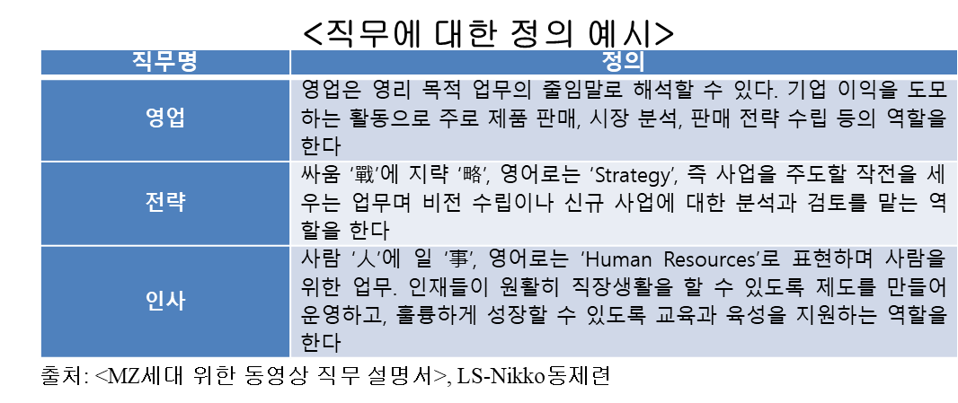 그런데 직무에 대한 이해 정도를 알아보기 위해 연관된 경험이 아니라 지원한 직무에 대한 정의를 물어보기도 한다. 예컨대 영업직무에 지원했다면 “지원자가 생각하는 영업 혹은 고객(만족)에 대해 말해보라”라고 하는 식이다.