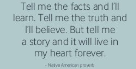 “내게 사실을 말하면 나는 배울 것이다. 진실을 말하면 믿을 것이다. 하지만 스토리로 말하면 영원히 가슴으로 공감할 것이다”-인디언 속담