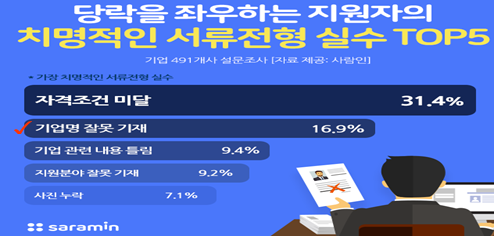 지원자 10%는 자기소개서에 회사명 잘못 써서 탈락